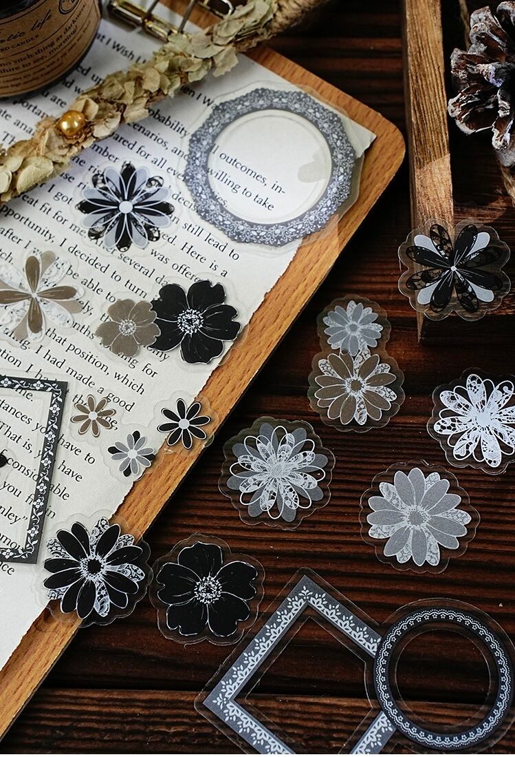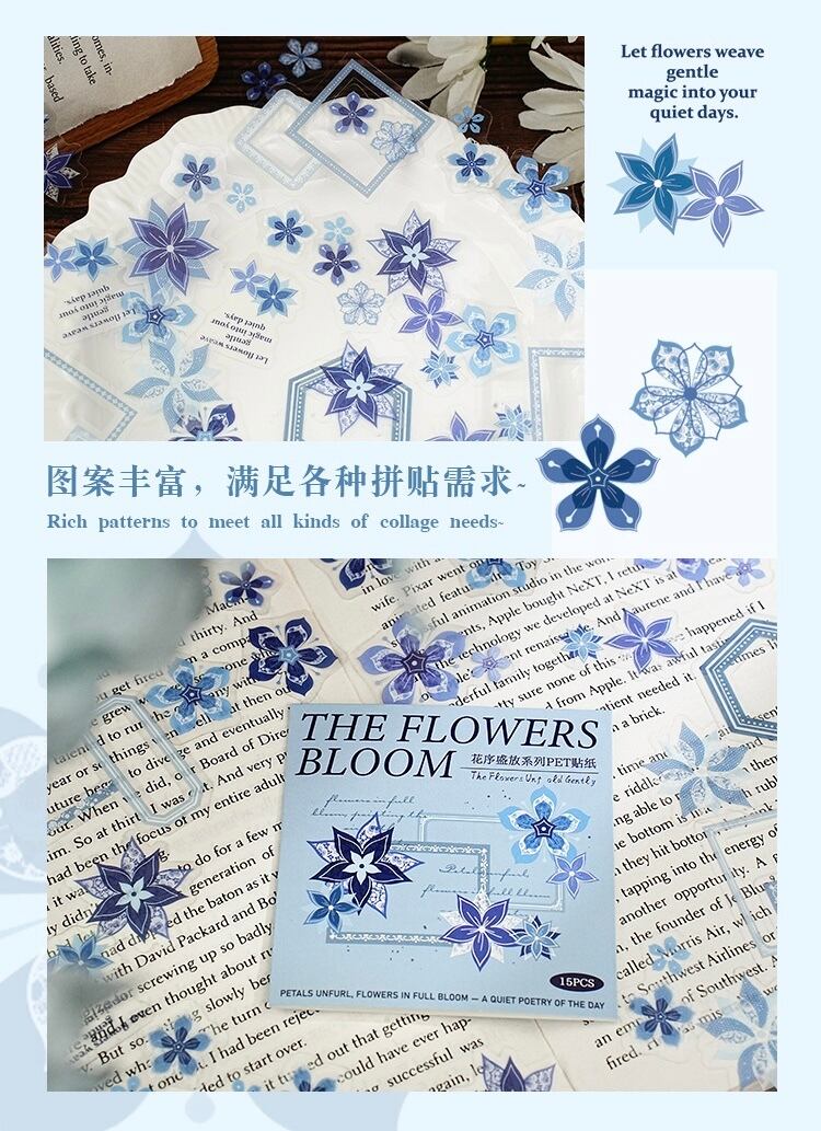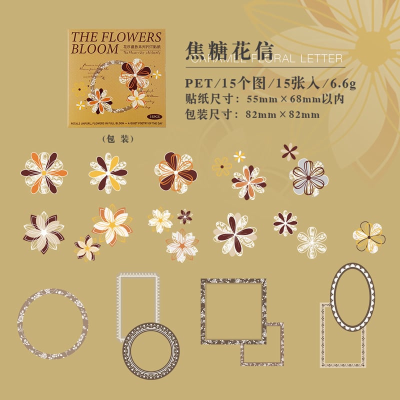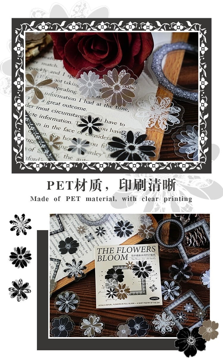 フローラルブルームシリーズ PET ステッカーバッグ - 花柄テーマのジャーナリング素材 コラージュデコレーション (6デザイン)