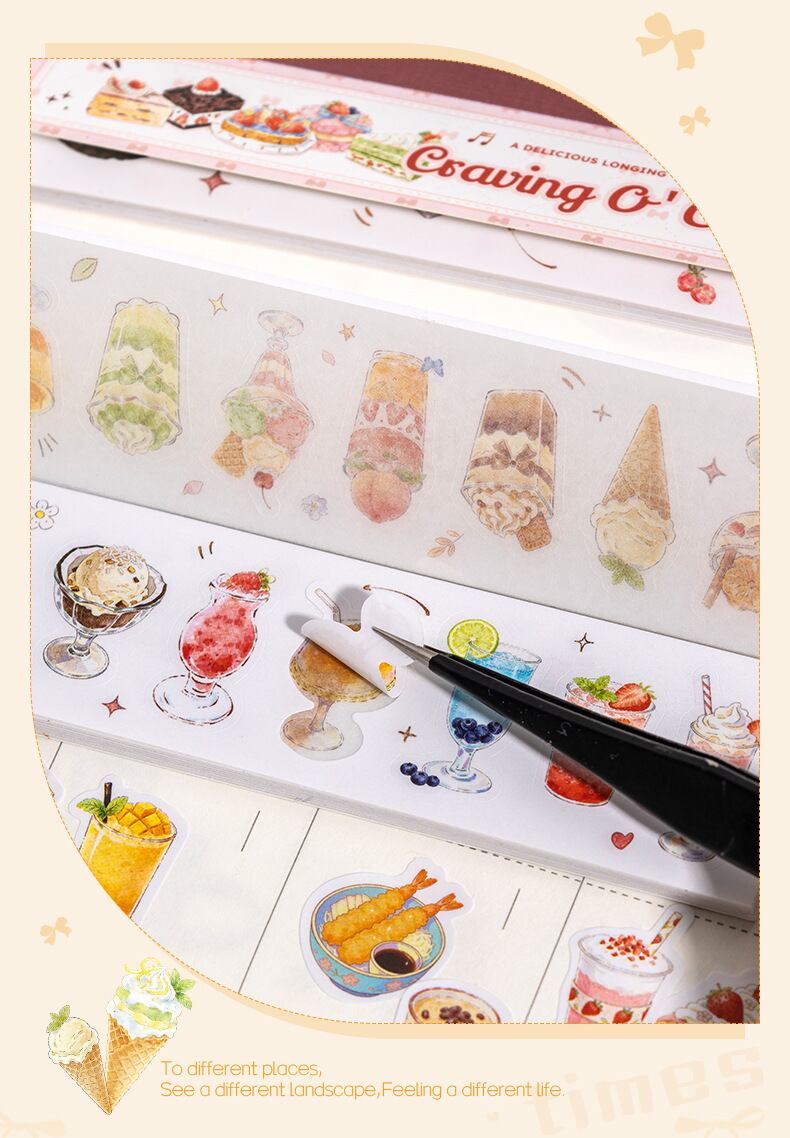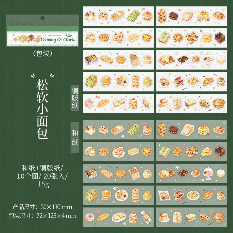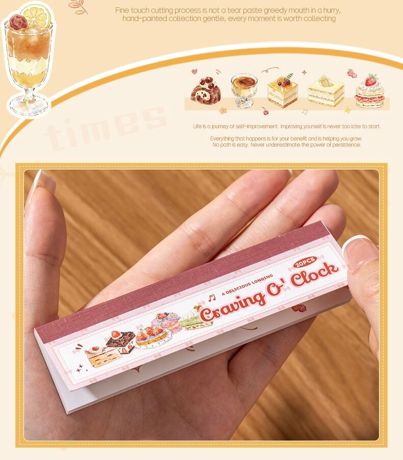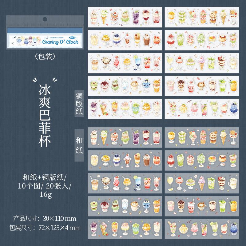 フードテーマ型抜きステッカーブック - モーメンツ・オブ・デザイアシリーズ(4種類のデザイン、各セット20枚入り、2種類の素材から選択可能)
