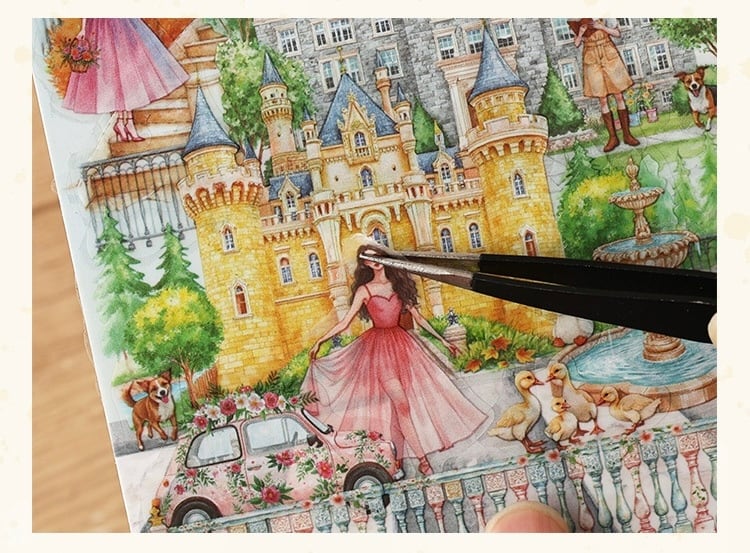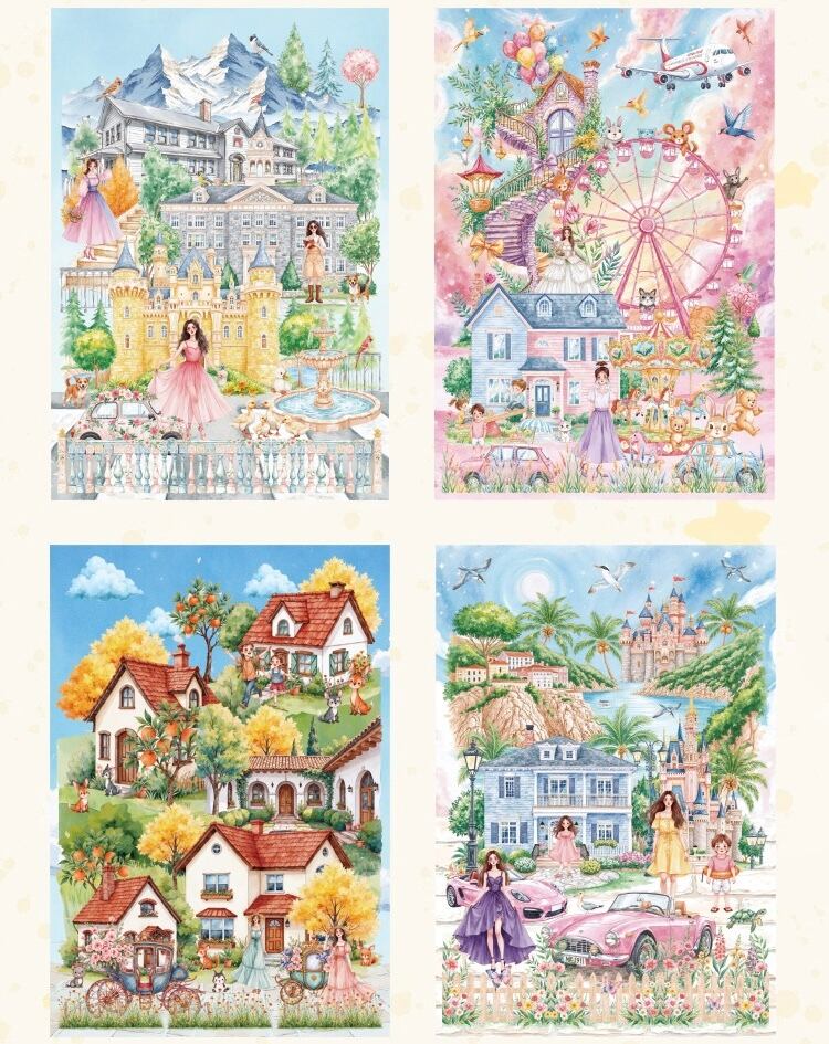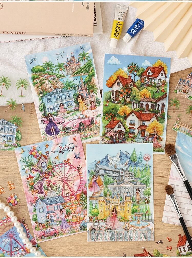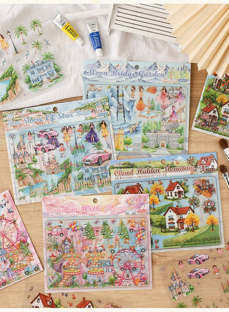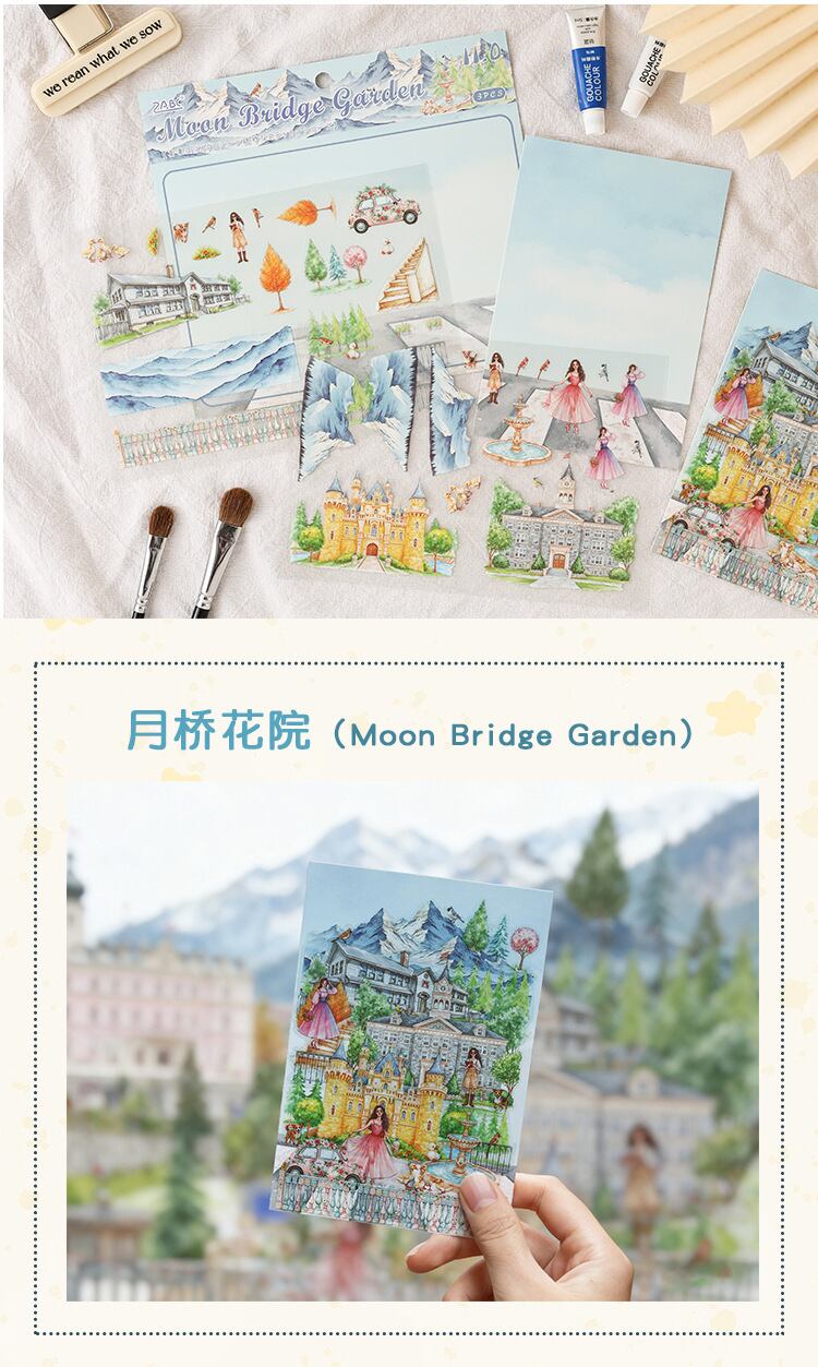ミニチュア風景シリーズ造園ステッカー、ヨーロピアンスタイルの風景ベース、コラージュ装飾