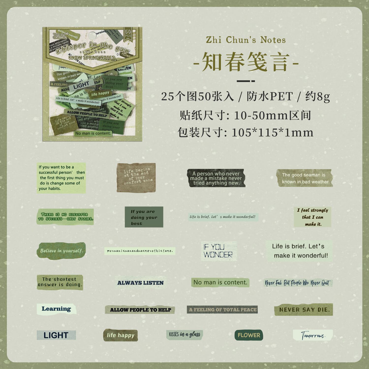 「Whispers in the Gap」シリーズ。レトロをテーマにした英語のテキストステッカー50枚