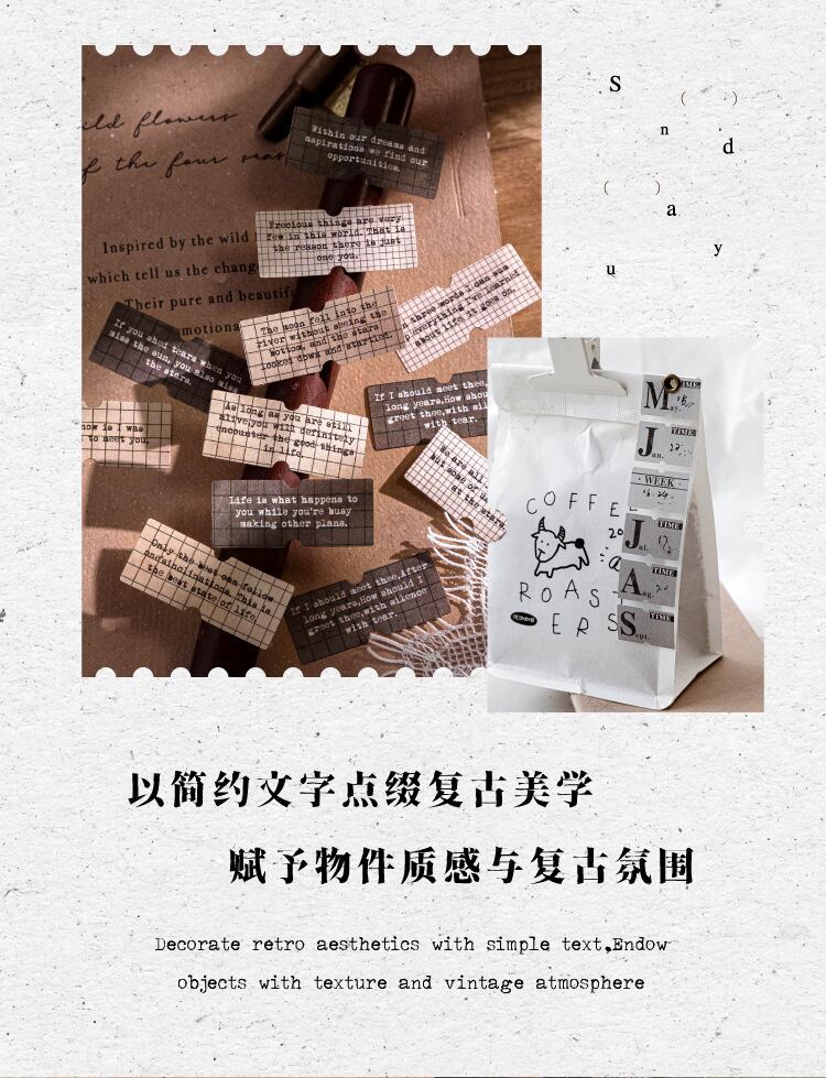 白いクラフト紙の型抜きテープ、ラベル文字シリーズ、DIYジャーナル装飾ベース