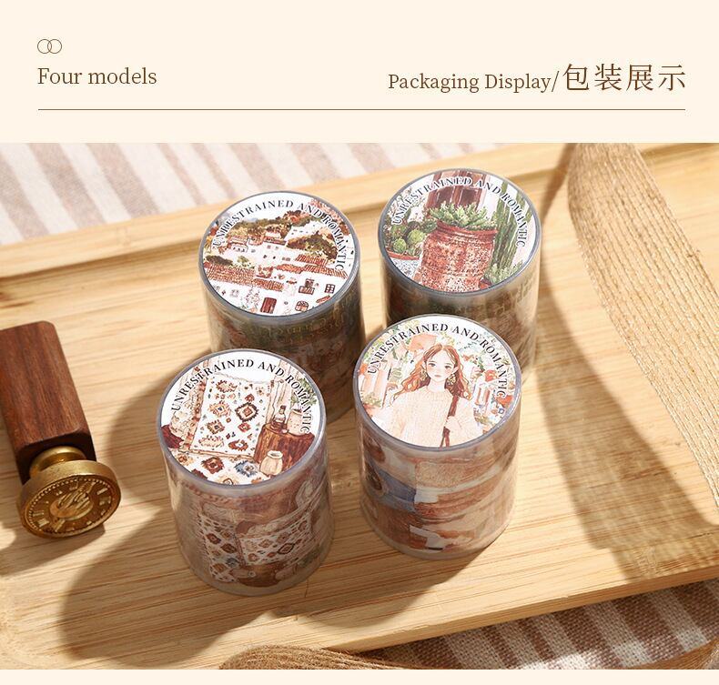 レトロ調の人物風景をモチーフにした和紙テープ。ロマンティックなボヘミアンシリーズで、様々なライフスタイルテーマに合わせて4つのスタイルからお選びいただけます。