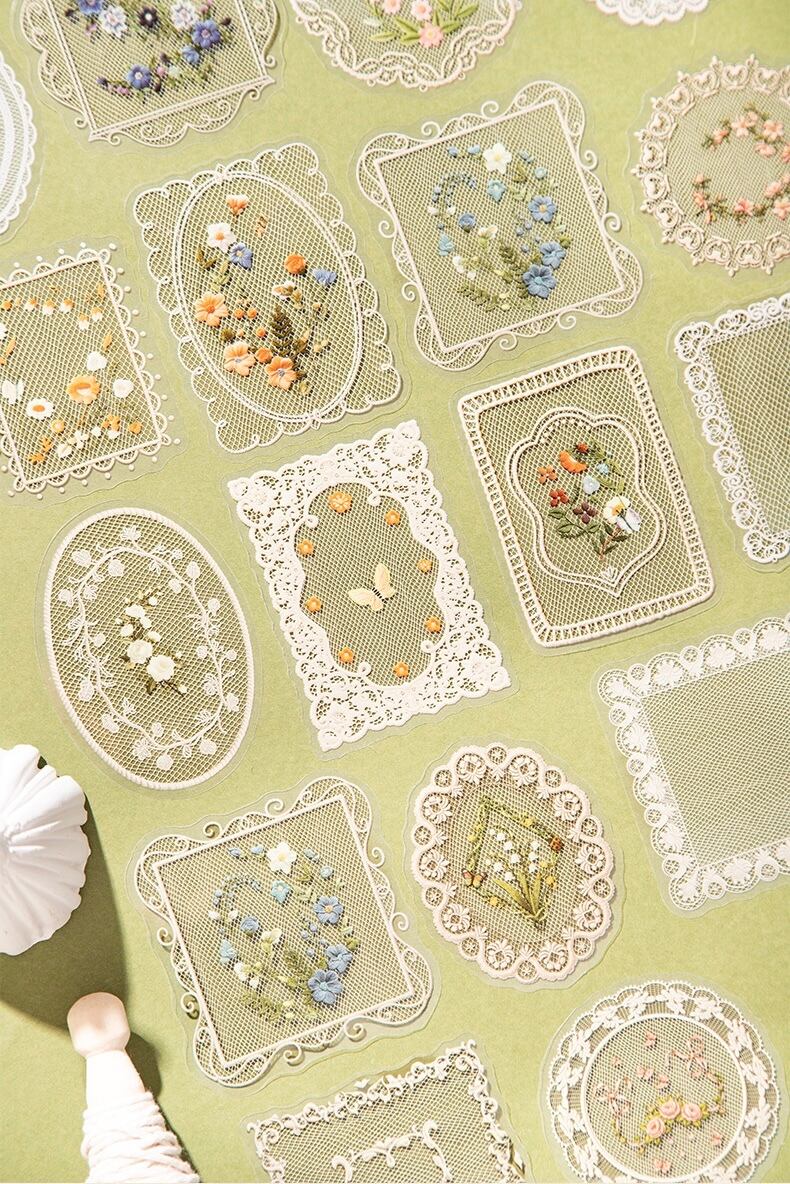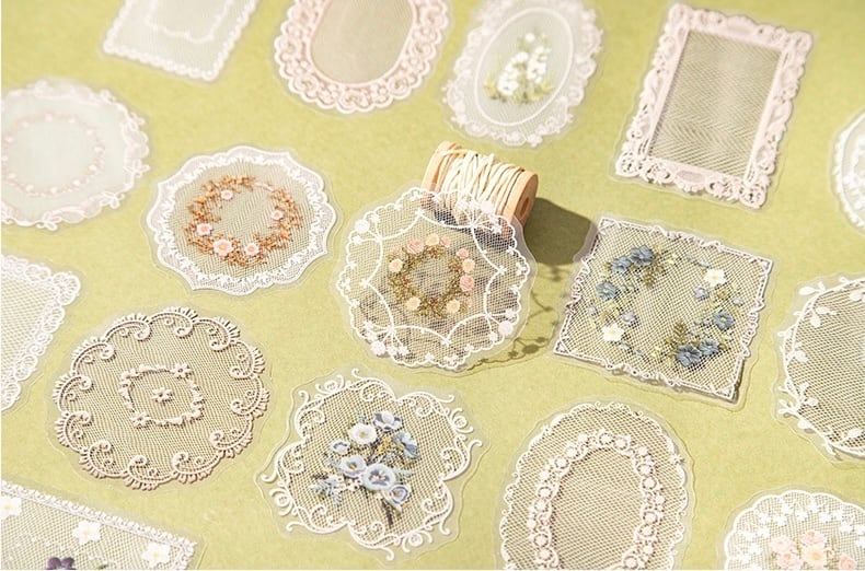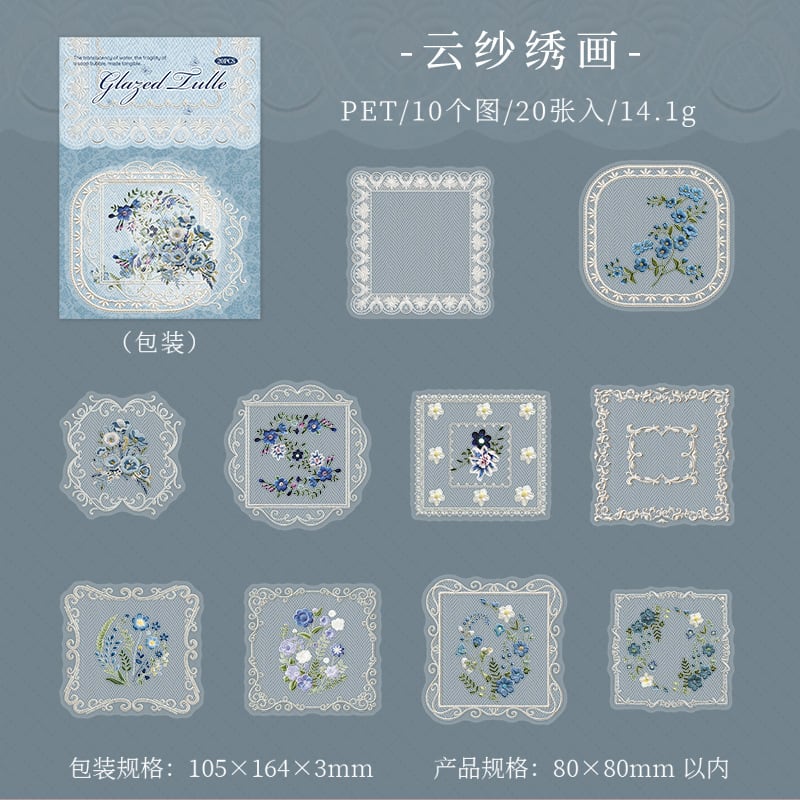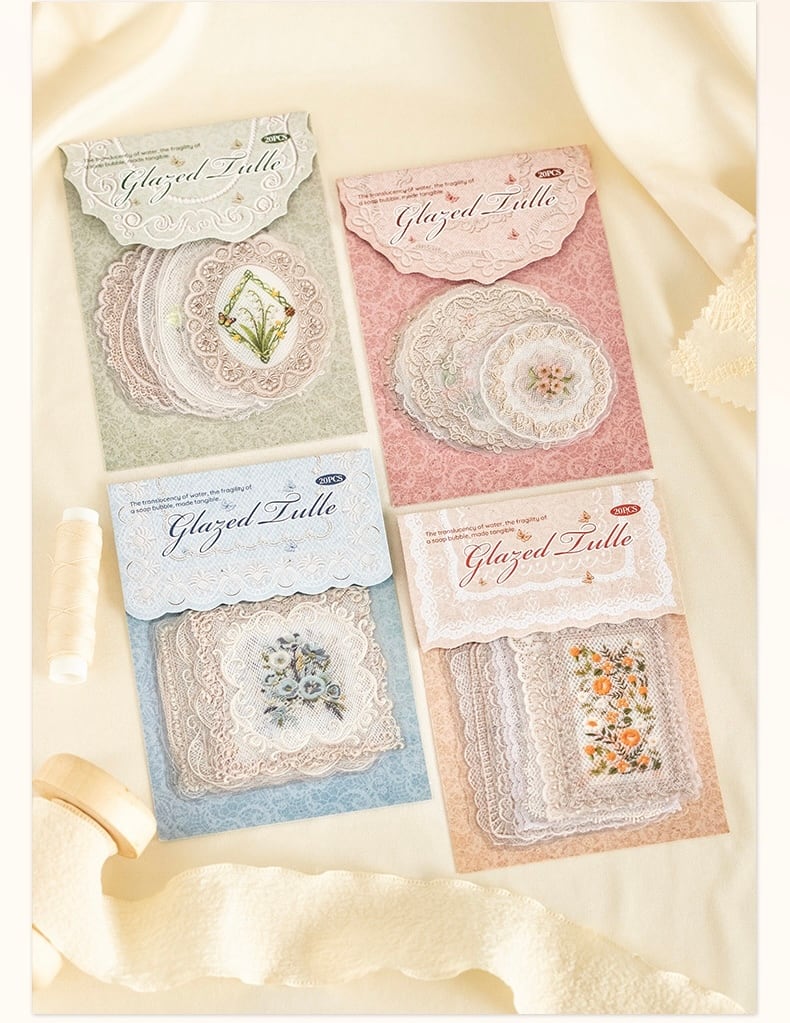 メッシュレース PETステッカーパック、ガラスガーゼシリーズ、4デザイン、1パック20枚入り、レーステーマ