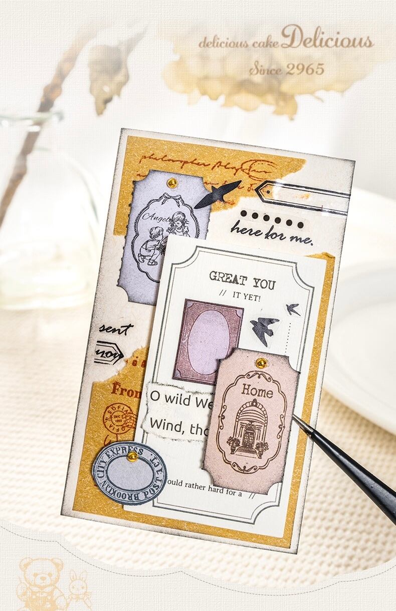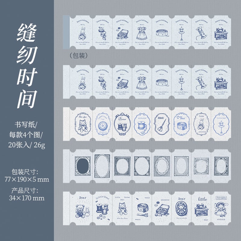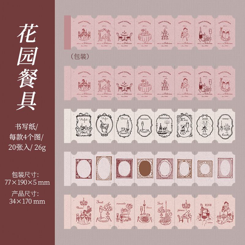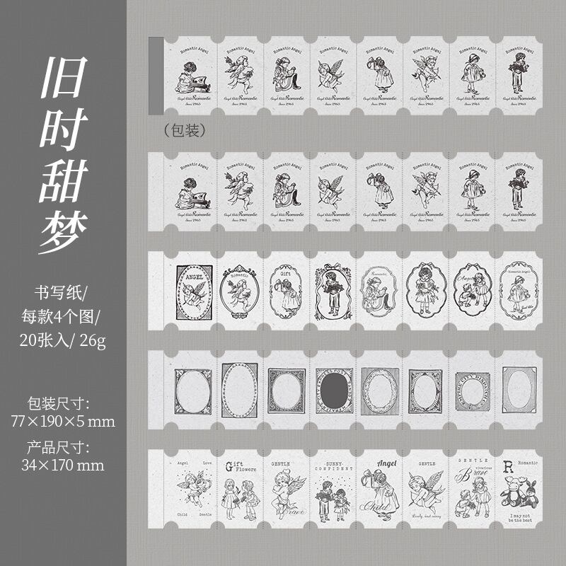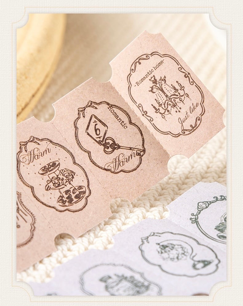 コレクションタグシリーズ、レトロアイテム風テーマのロングストリップステッカー6枚