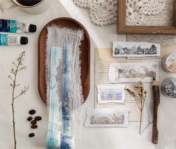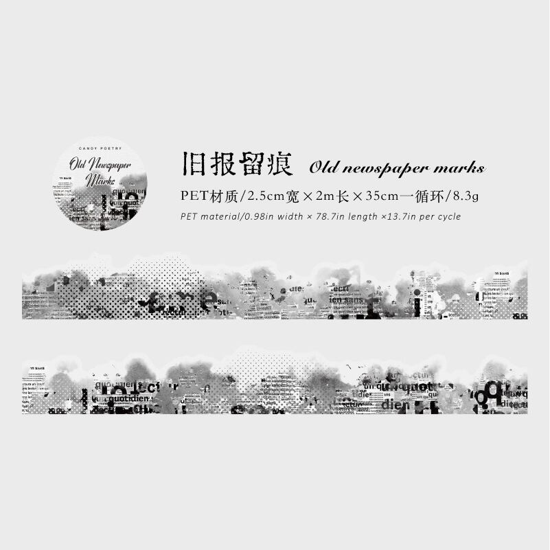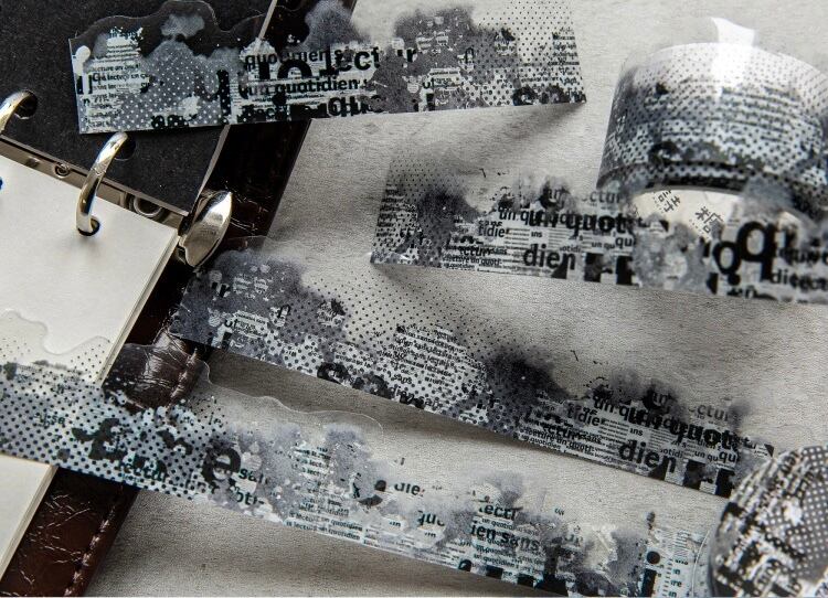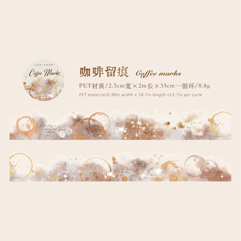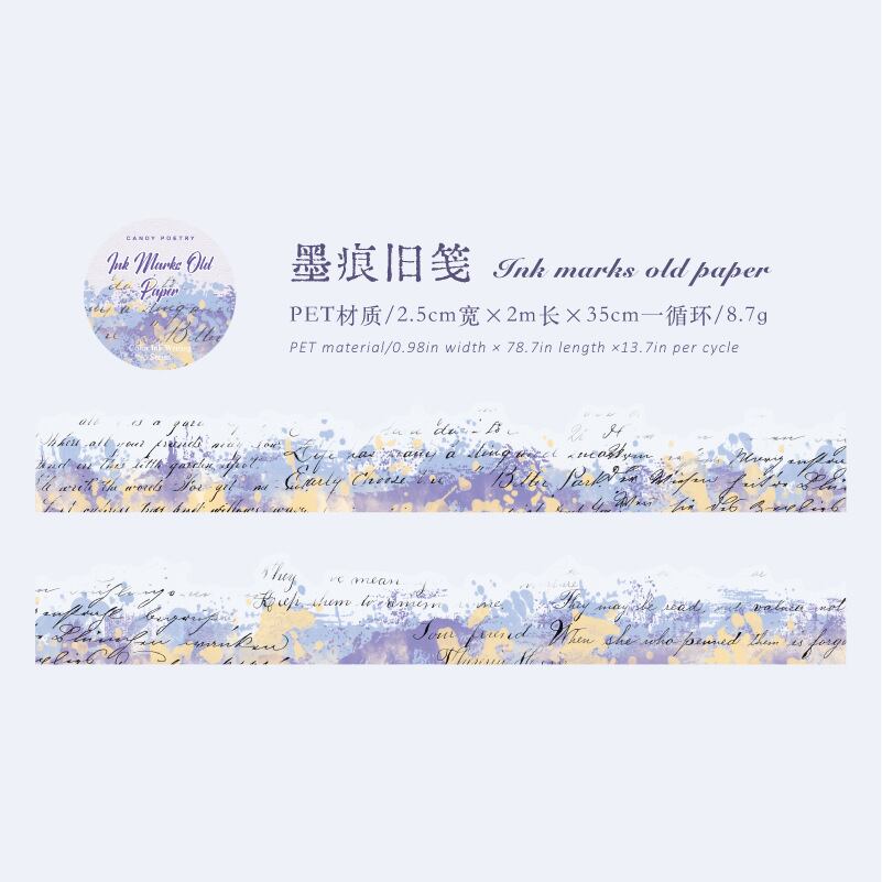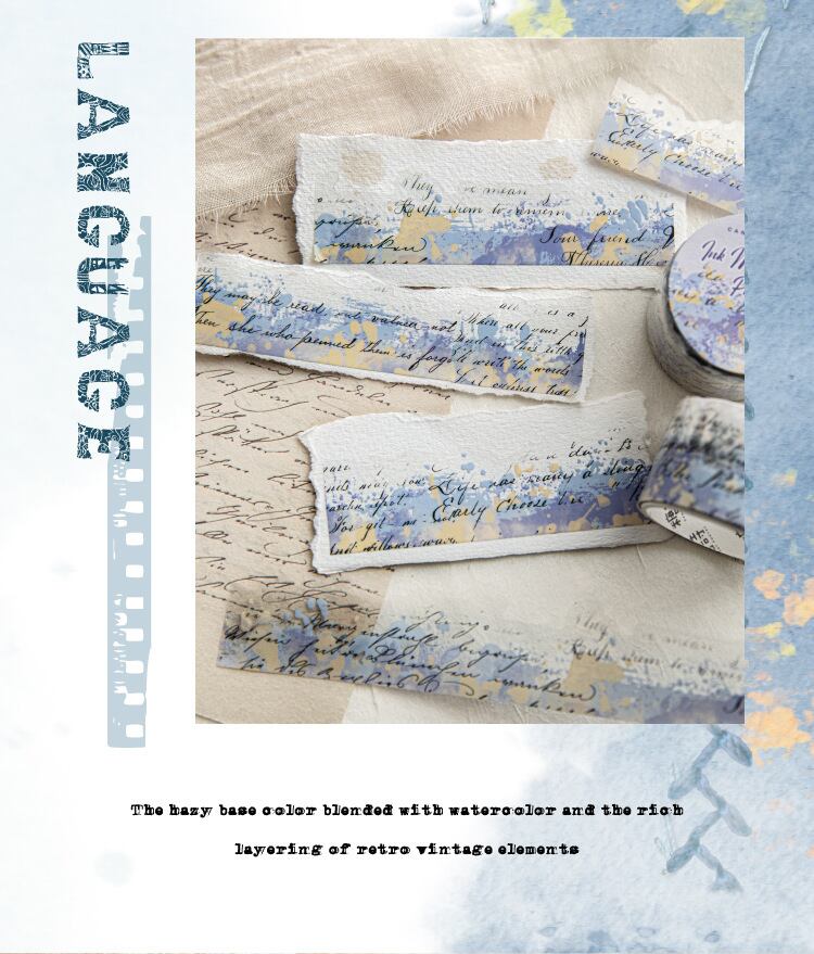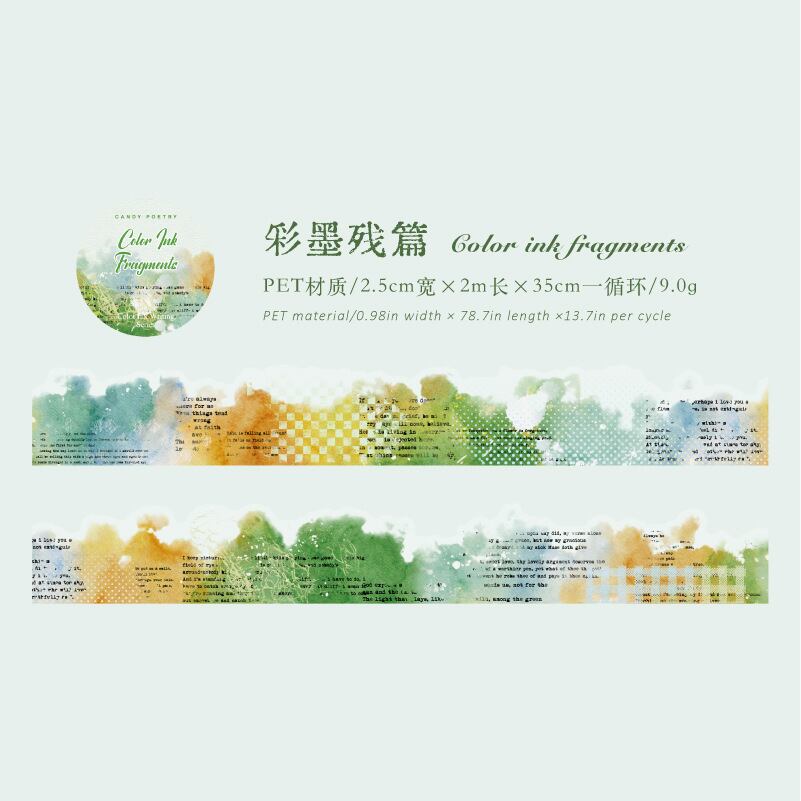 PET製不規則形状テープ、インクとカラーの文字シリーズ、水彩画風装飾ジャーナル素材、コラージュデザイン(8種類)
