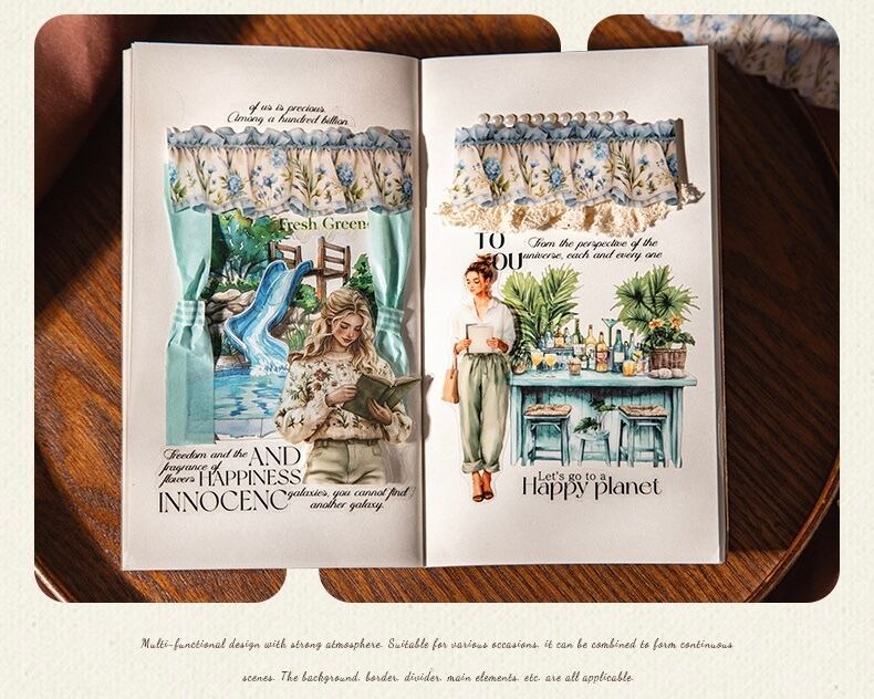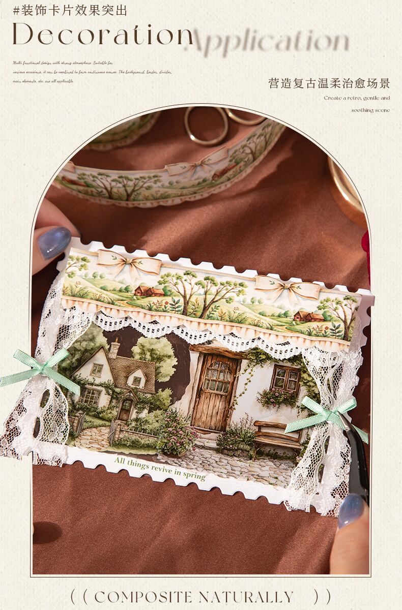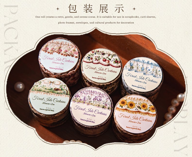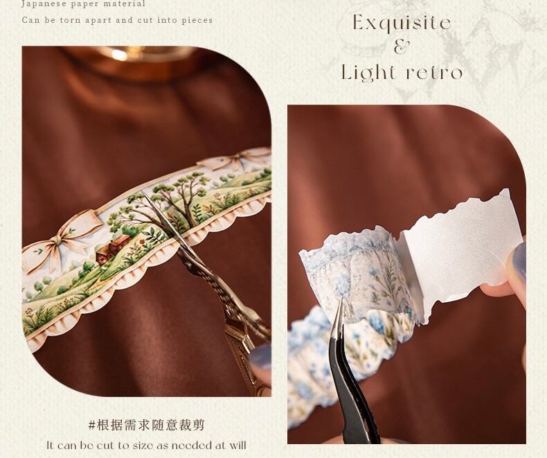 Senyu Manlianシリーズ:カーテンをテーマにした不規則な形の風景柄和紙テープ、レトロなジャーナリング素材の装飾