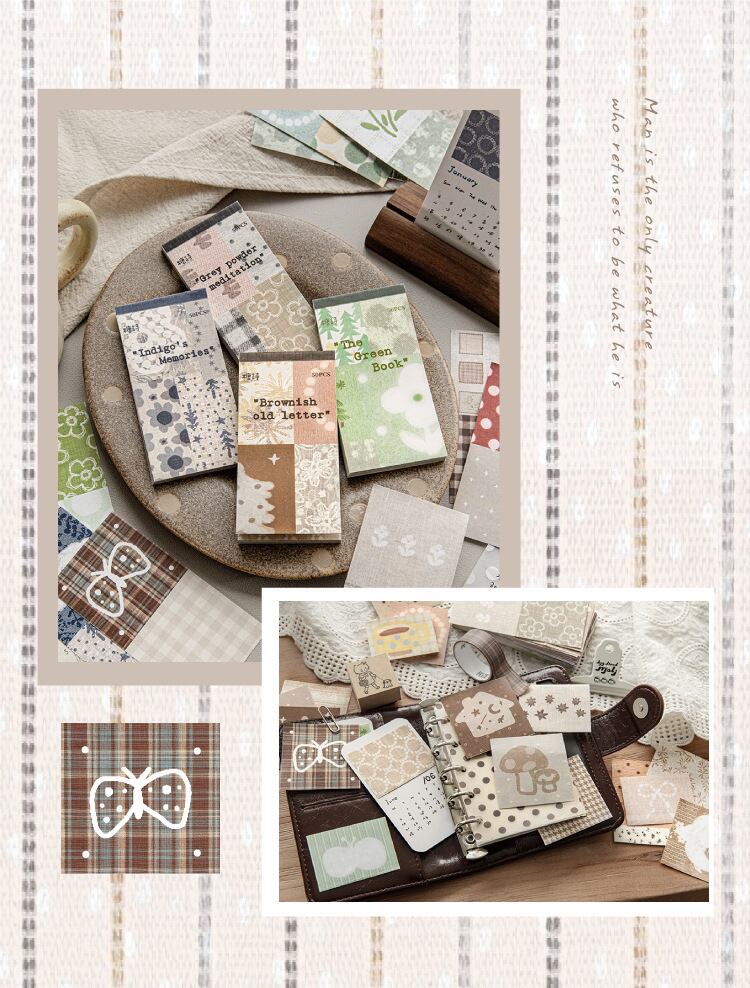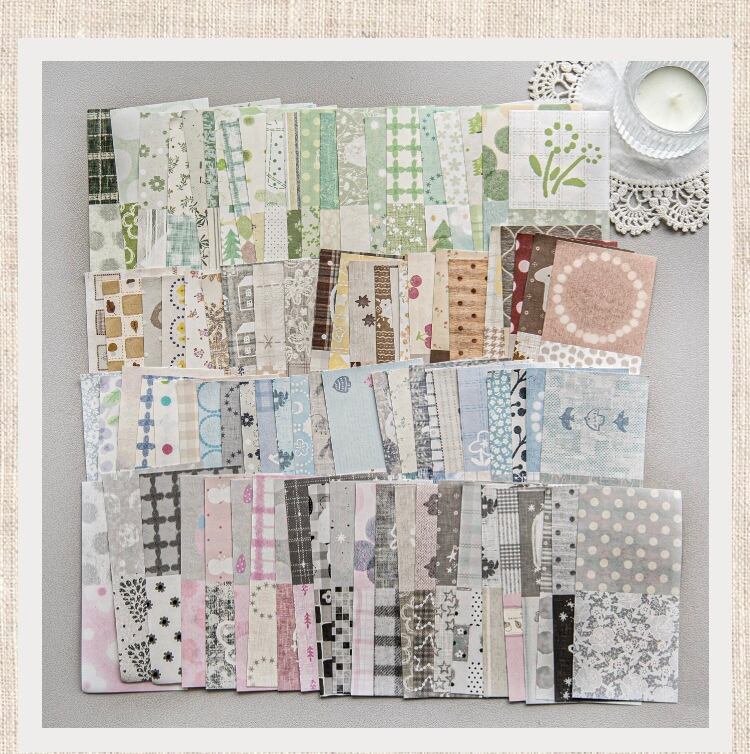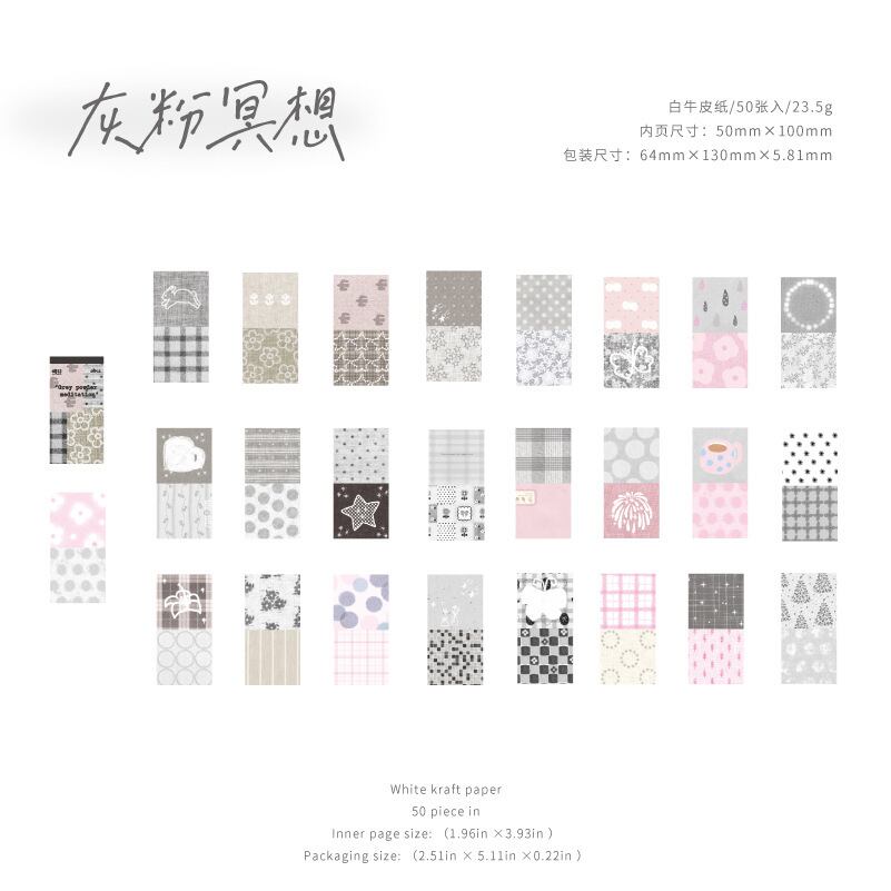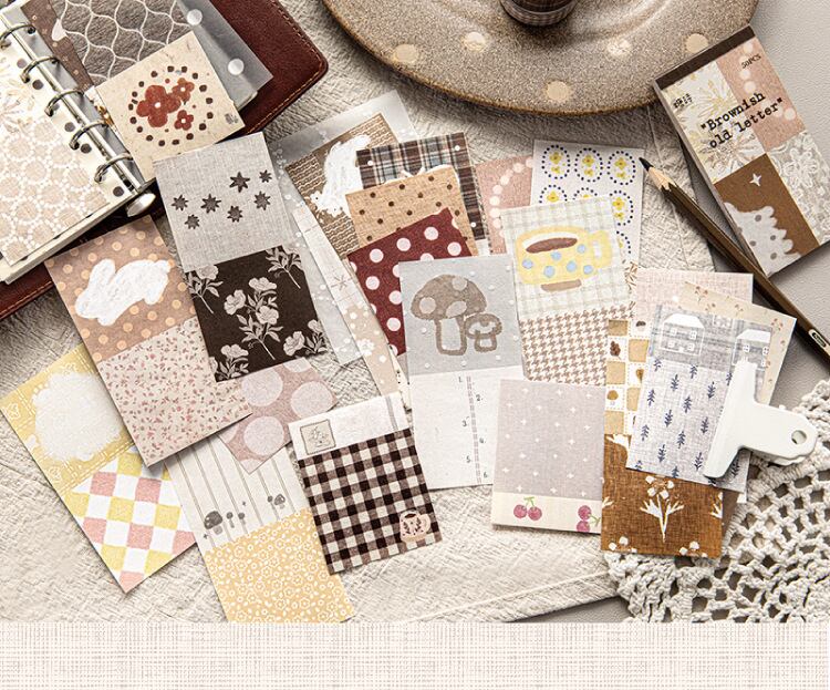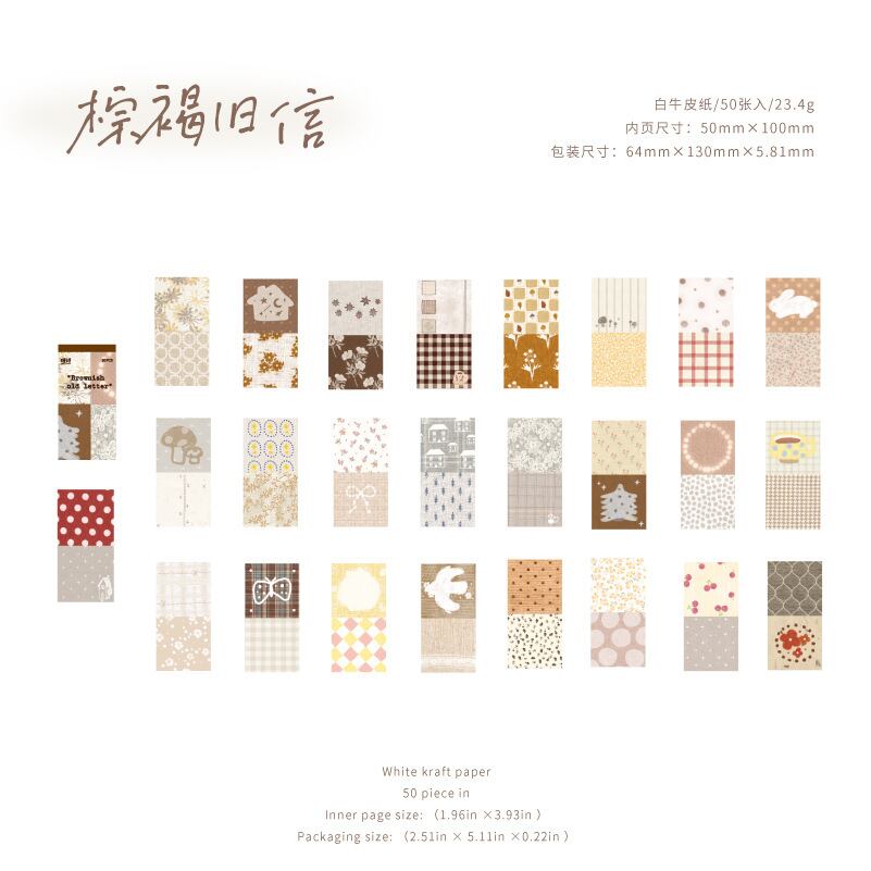 オリジナルライトレトロ素材紙、フェードポエムシリーズ、50枚入り、ホワイトクラフト紙ベース、コラージュデザイン(4種類から選択可能)。