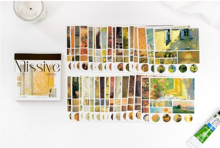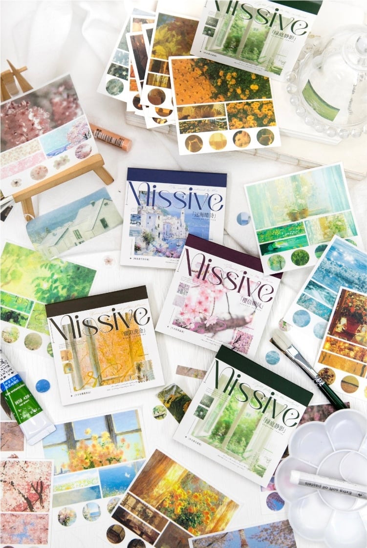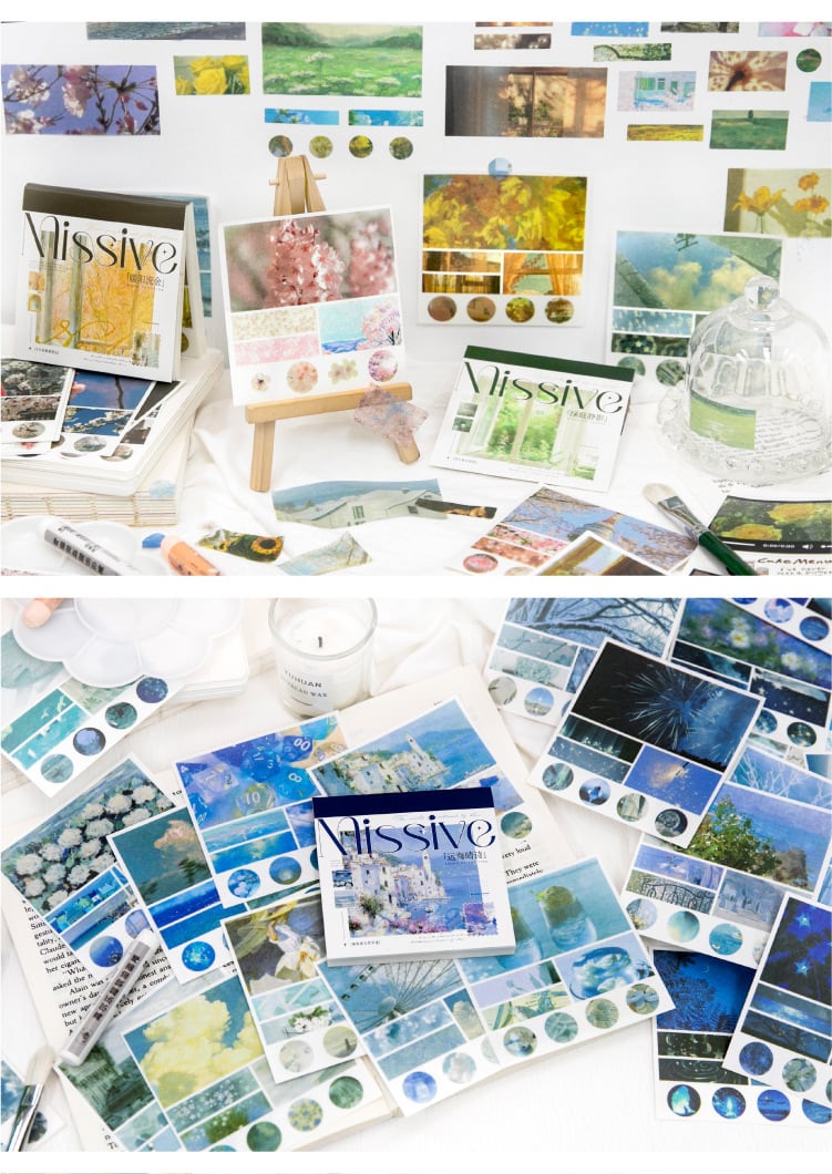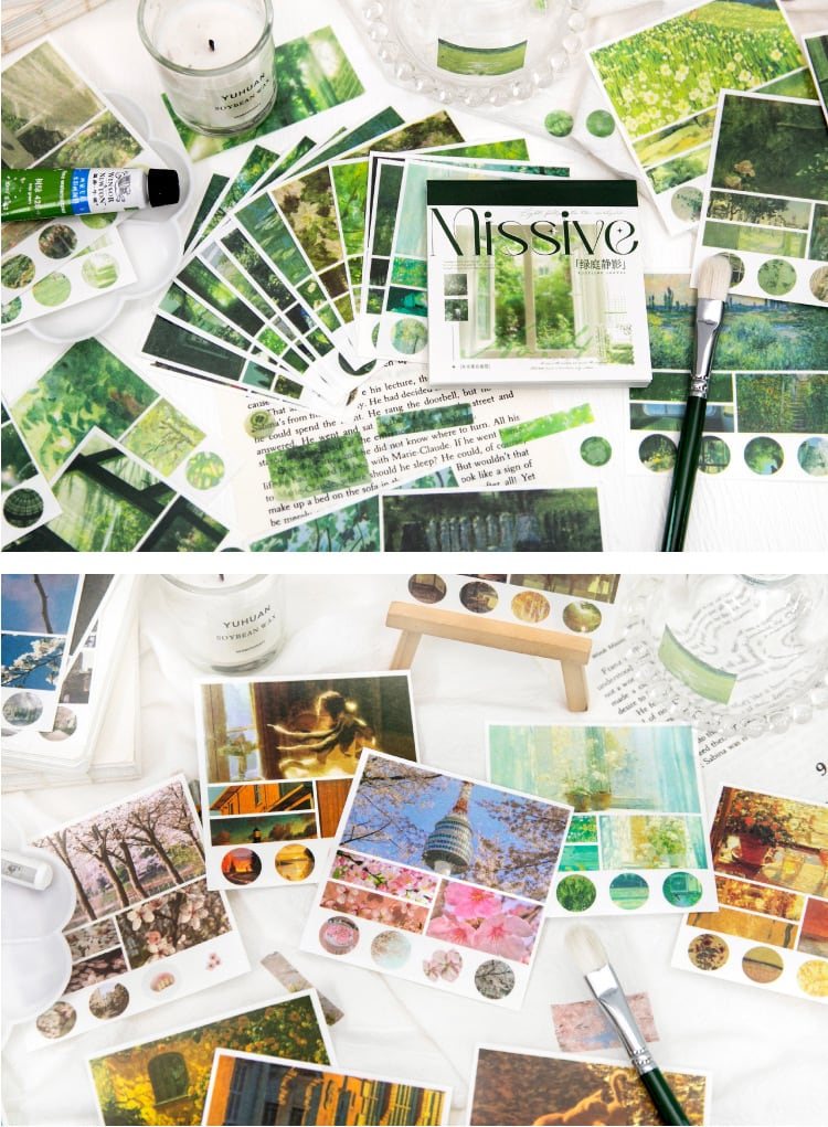 「遠い国からの手紙」シリーズのステッカーブック、風景日記の装飾素材、40枚入り、4種類のデザイン。
