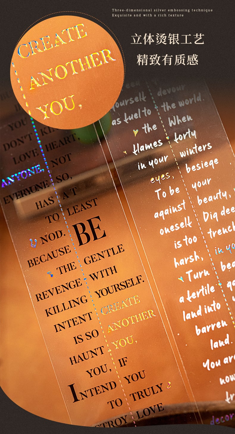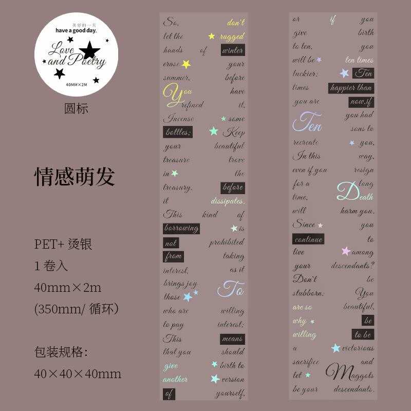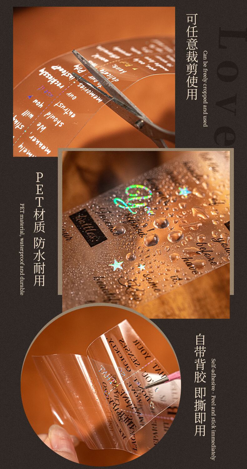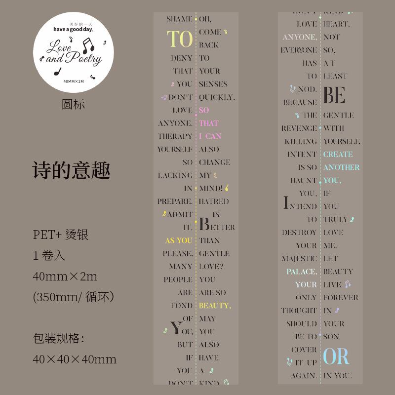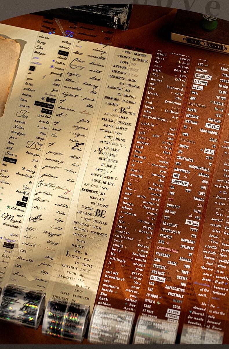 PETホットスタンピングシルバーテープ、ラブ&ポエトリーシリーズ、レトロなレタリングテーマのコラージュベースステッカーとして6種類から選択可能