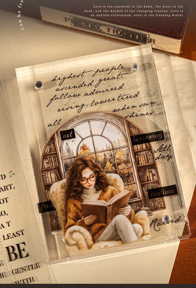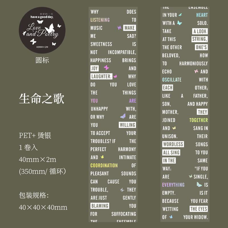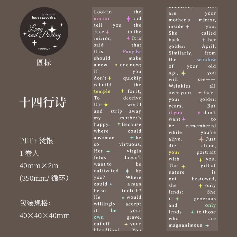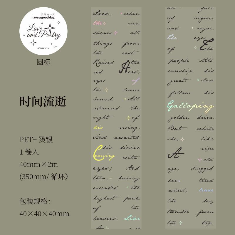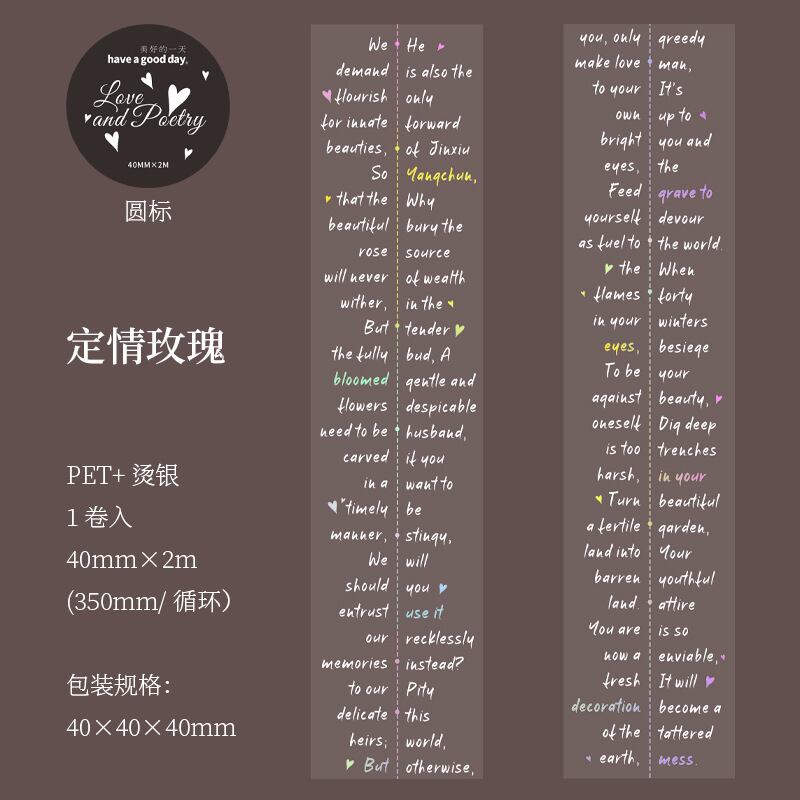 PETホットスタンピングシルバーテープ、ラブ&ポエトリーシリーズ、レトロなレタリングテーマのコラージュベースステッカーとして6種類から選択可能