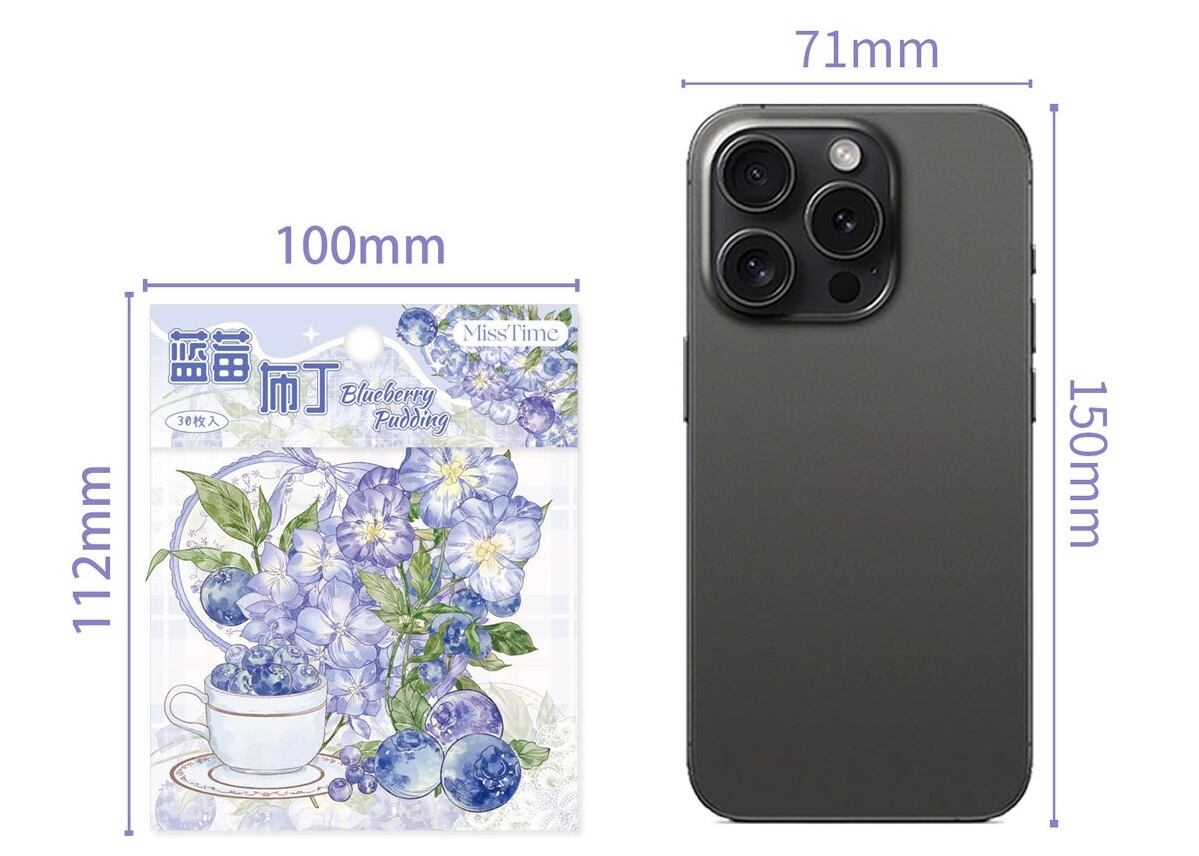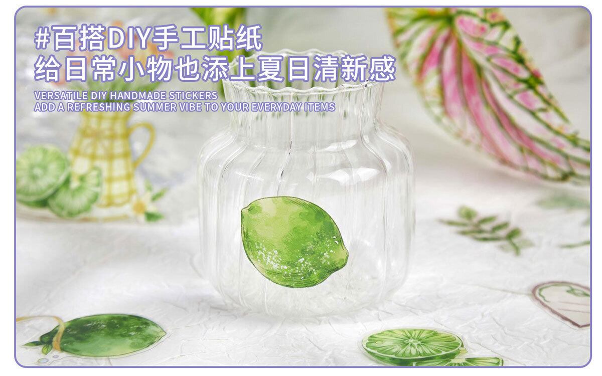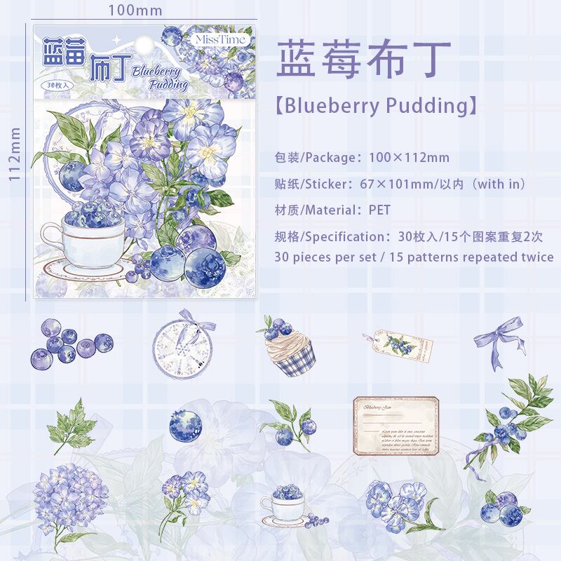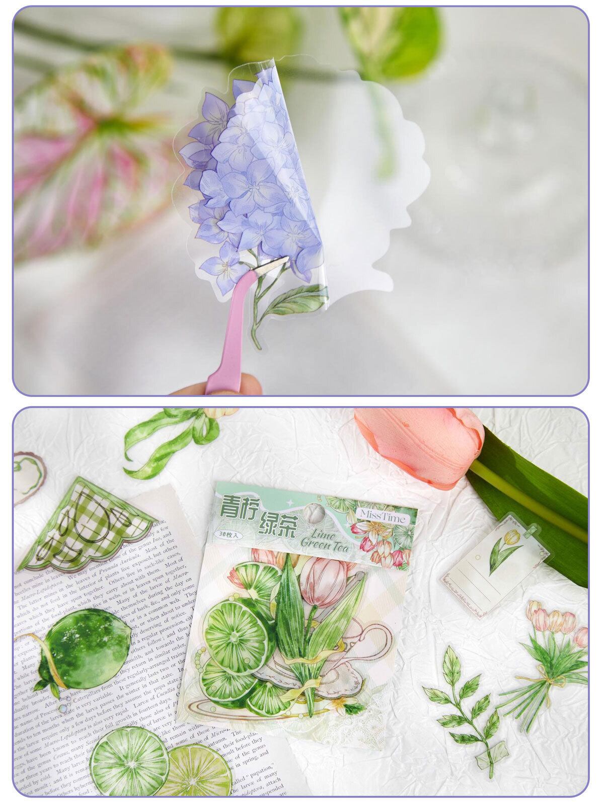 フルーツティーパーティーシリーズステッカーパック:花と植物をテーマにしたDIYジャーナルデコレーション(30枚、2デザイン)