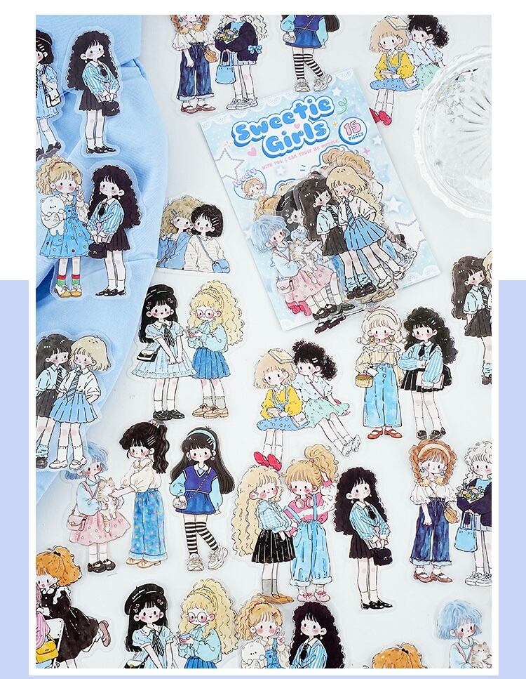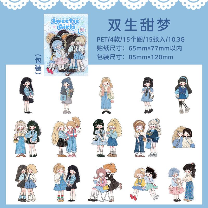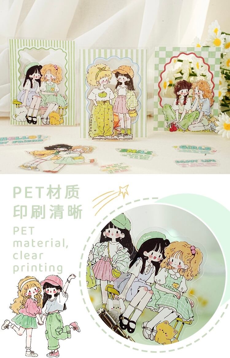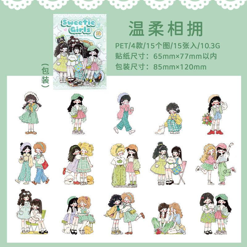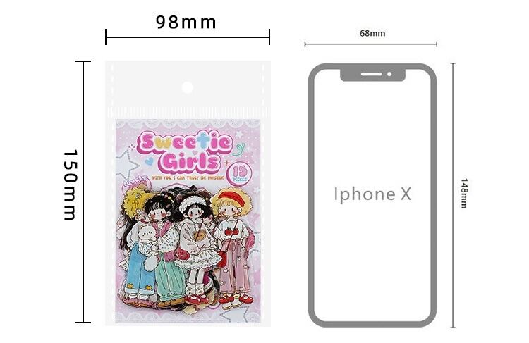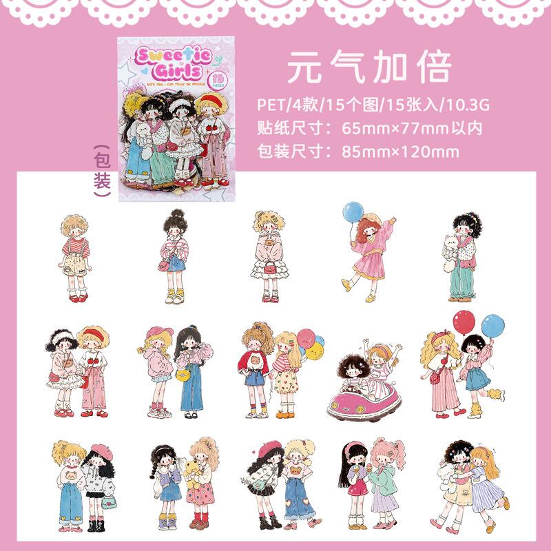 キュートで愛らしい漫画キャラクターのPETステッカーパック(15枚、4種類のデザイン)
