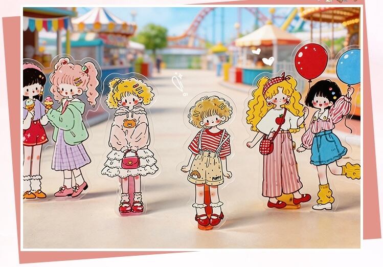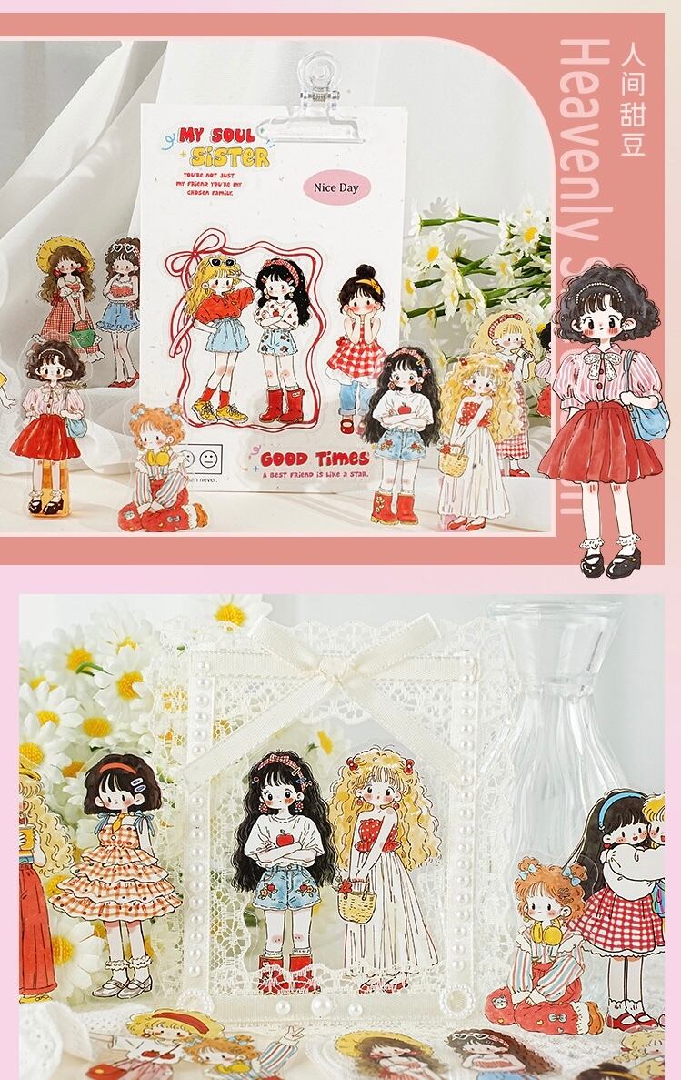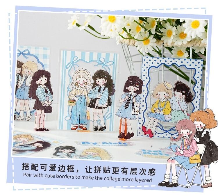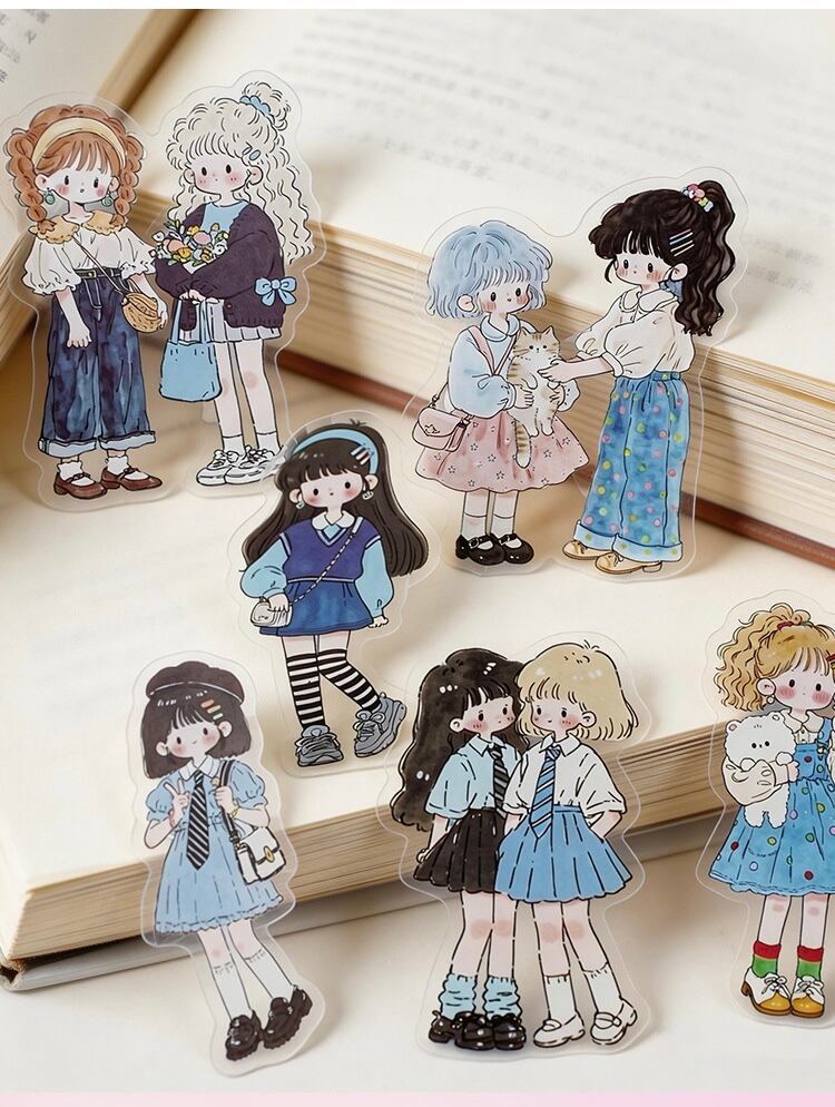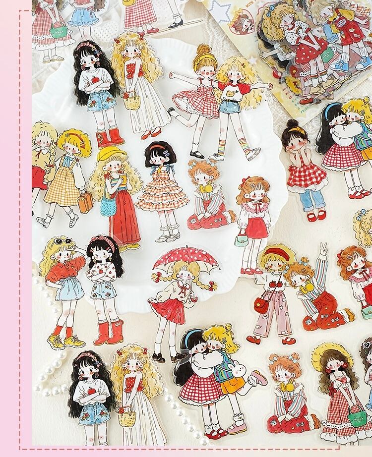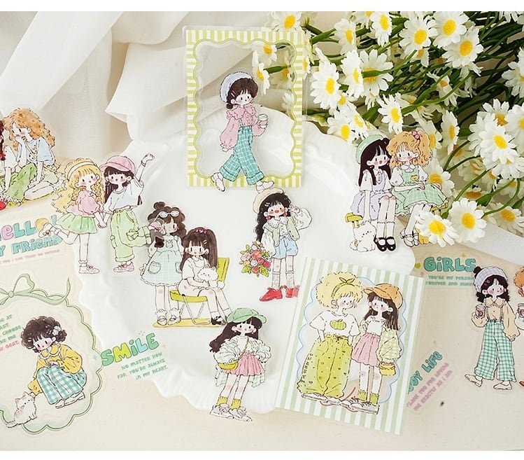 キュートで愛らしい漫画キャラクターのPETステッカーパック(15枚、4種類のデザイン)