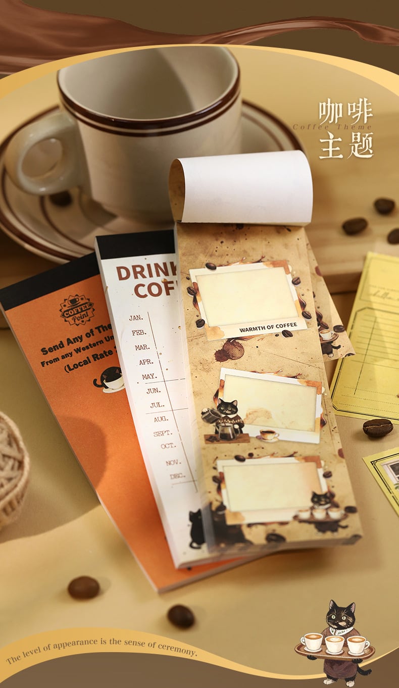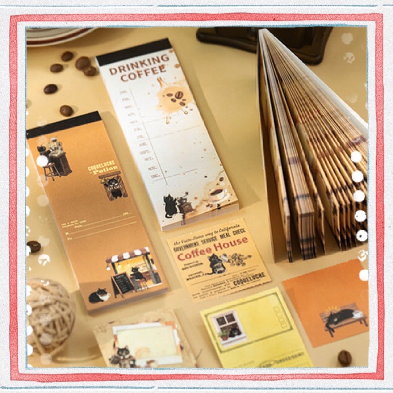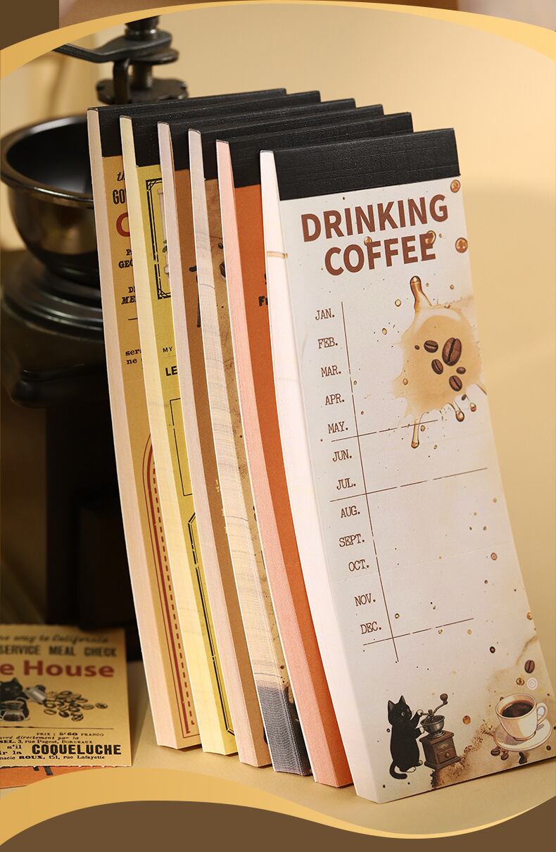 リトルラッキーコーヒー愛好家シリーズ:レトロライフスタイルDIYコーヒーノート(50枚、6デザイン)
