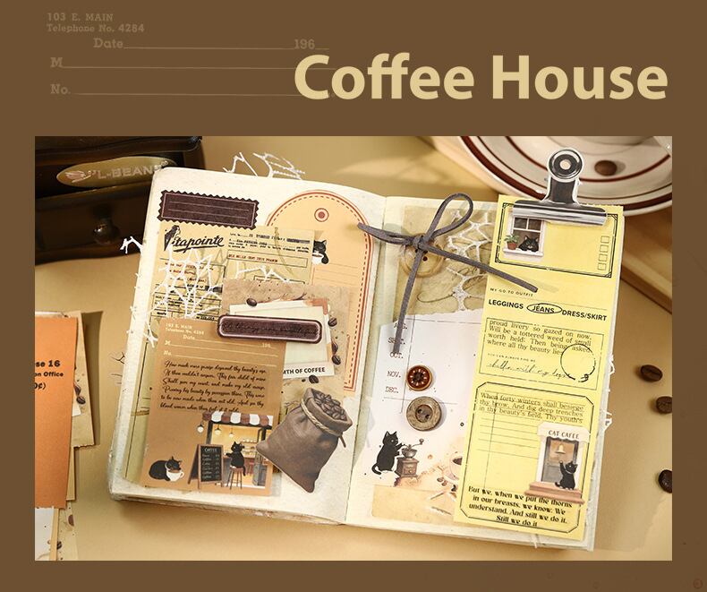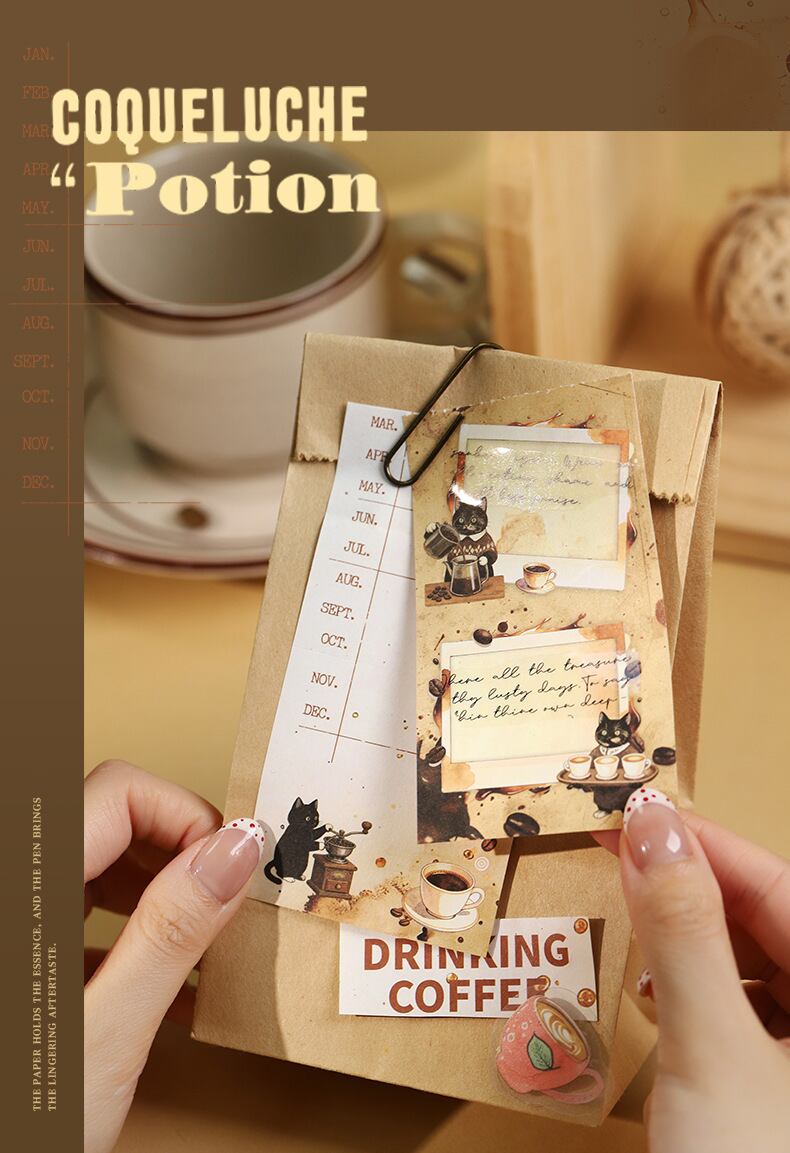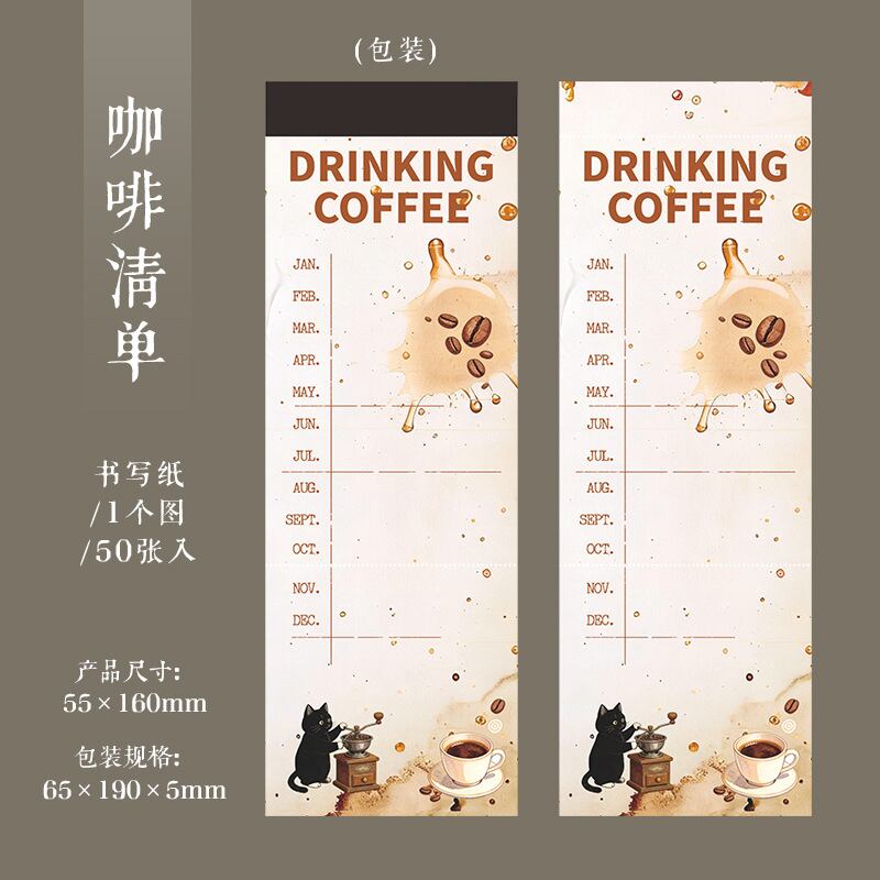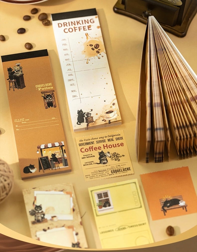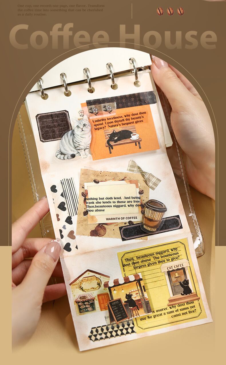 リトルラッキーコーヒー愛好家シリーズ:レトロライフスタイルDIYコーヒーノート(50枚、6デザイン)