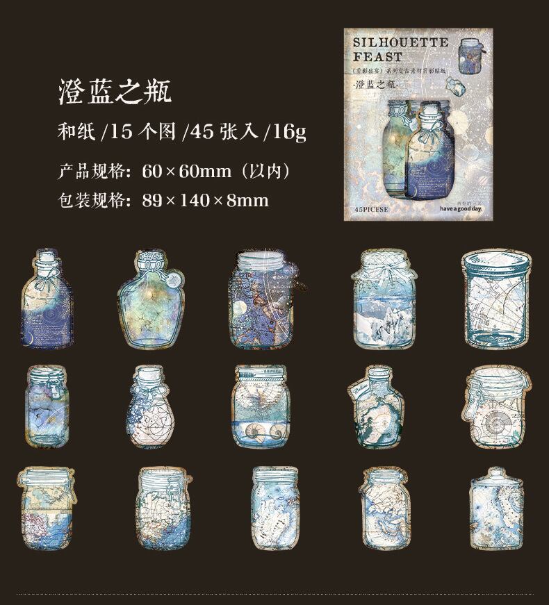 ステッカー シルエット饗宴シリーズ レトロ素材 シルエットポケット素材 デコレーション コラージュ 6種類
