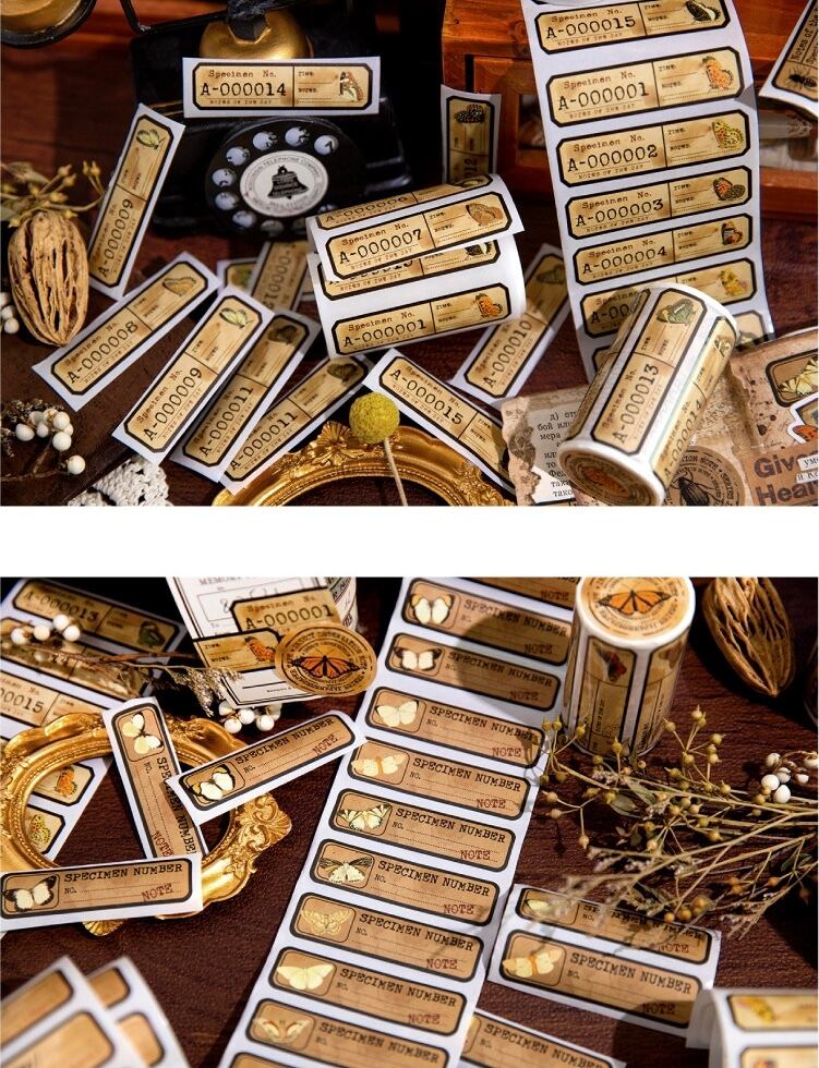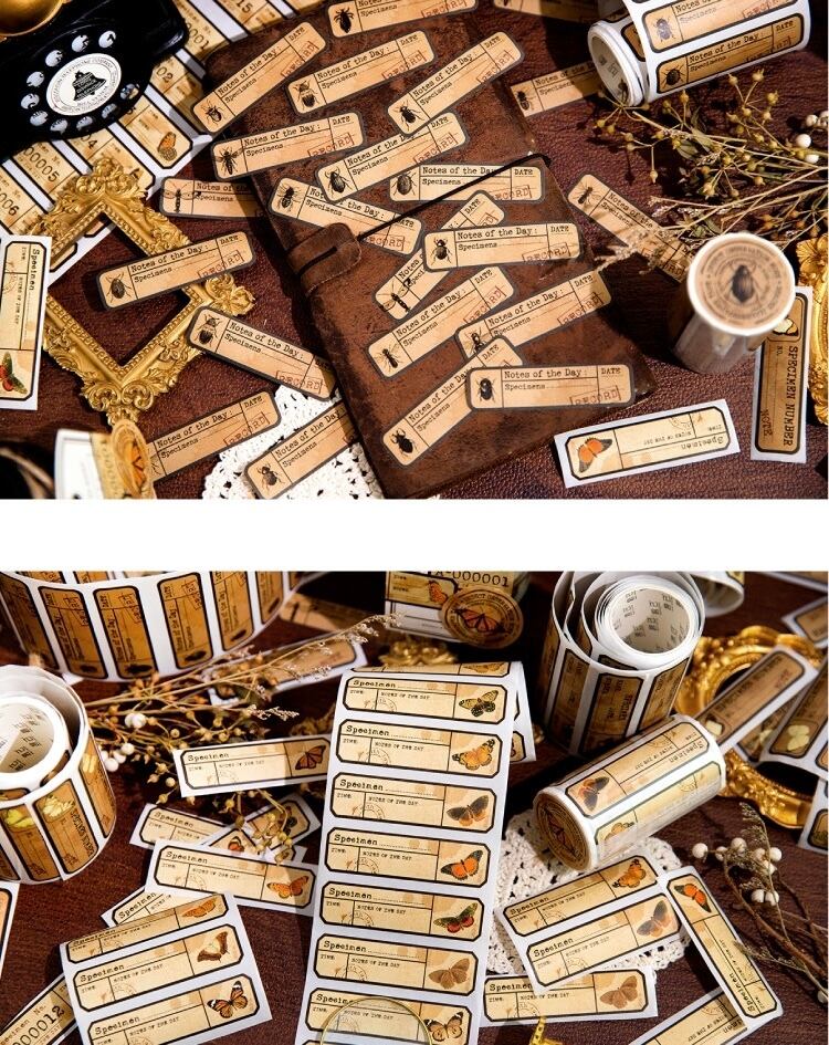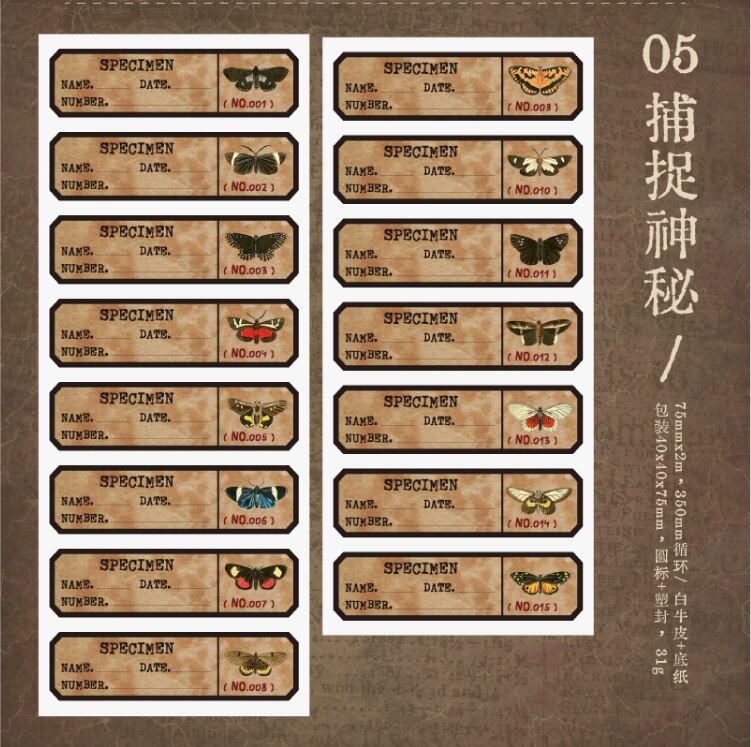 レトロテープ昆虫観察ノートシリーズ白クラフト紙蝶装飾ステッカー6選