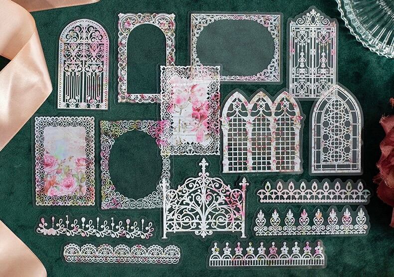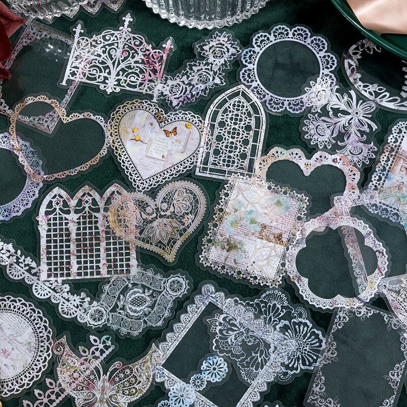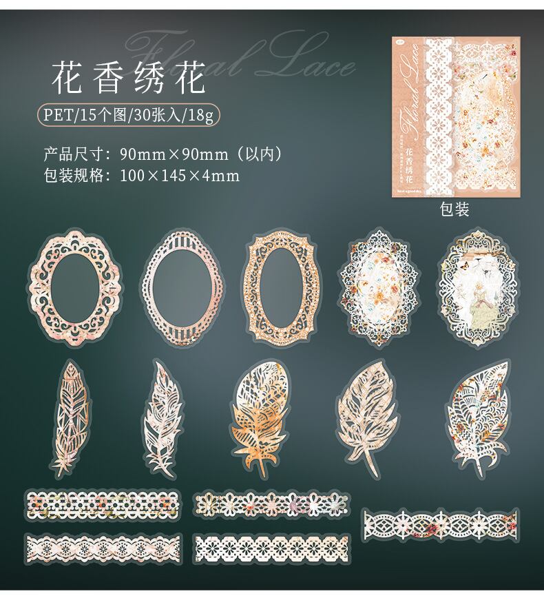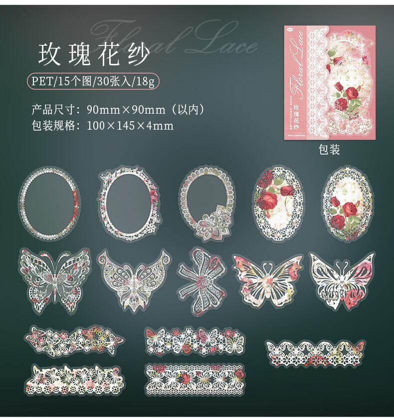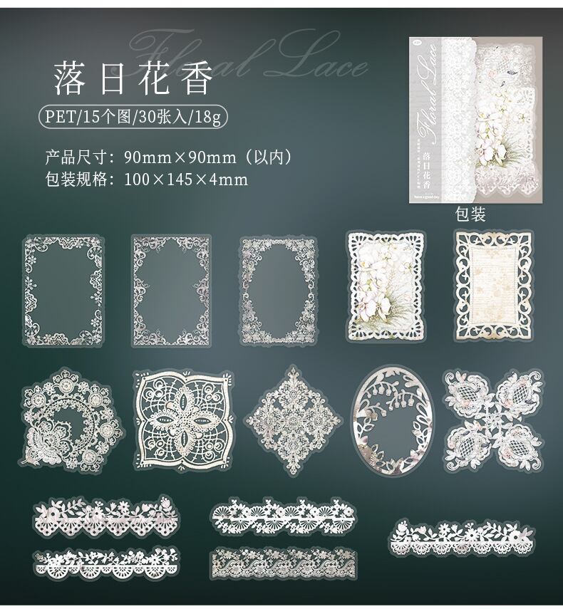 PETステッカー ブルーミングレースシリーズ レース素材 ポケット装飾 コラージュベース 6種