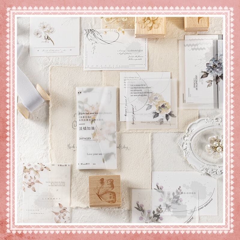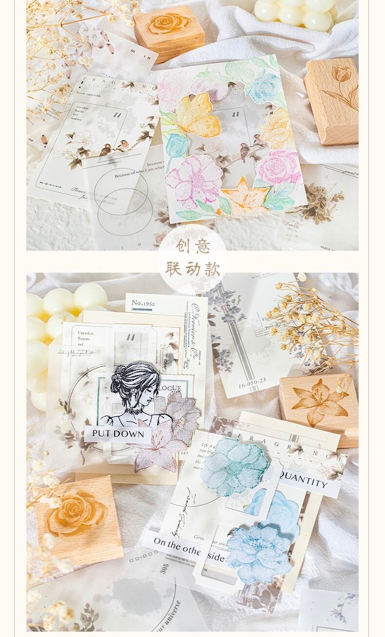 インクフラワー デュアル素材付箋 ライトインクフラワー 隠しシリーズ ハンドアカウント素材 装飾コラージュ 8種類