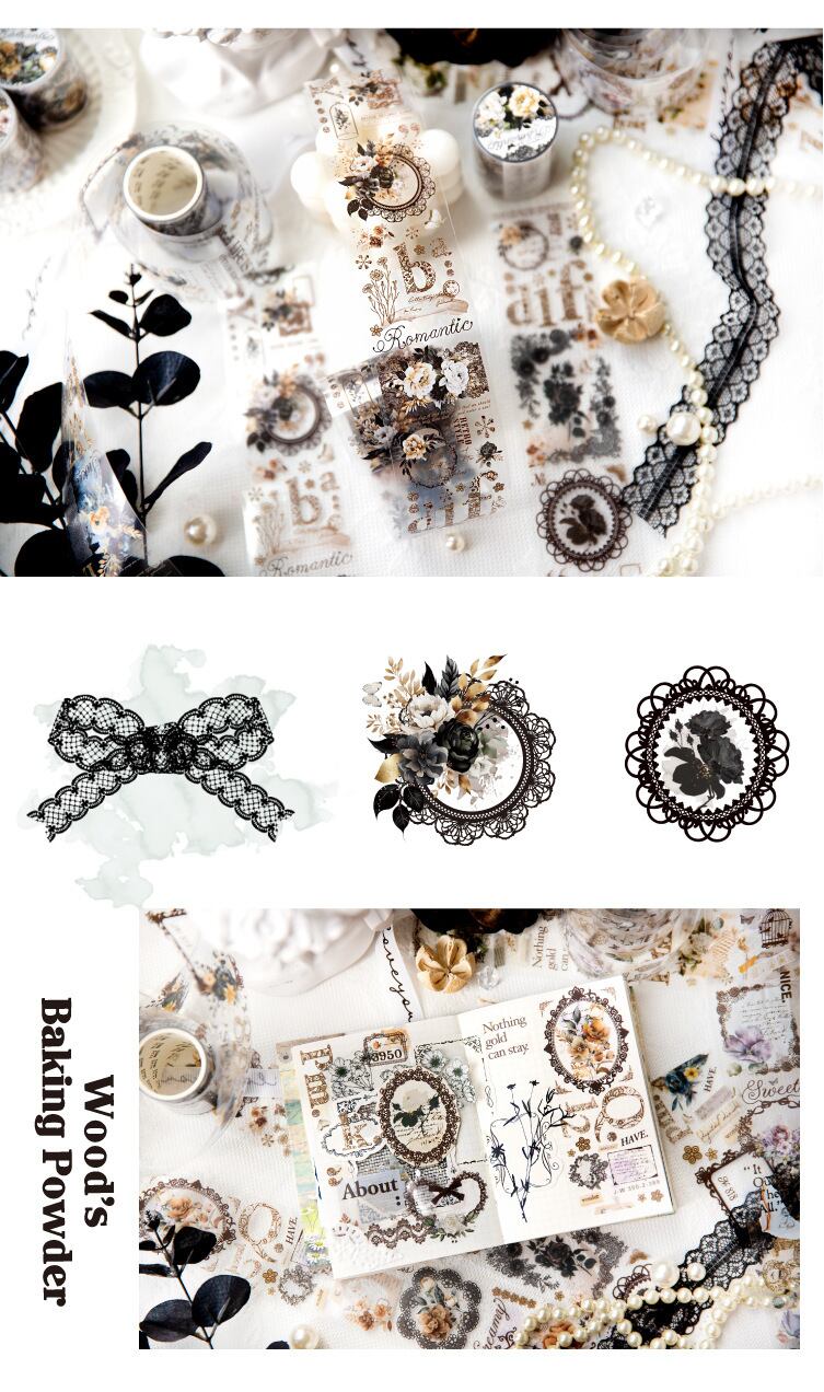 PET テープ レース ノクターン シリーズ 6 種類のレトロなレース ハンドバッグ装飾材料コラージュ