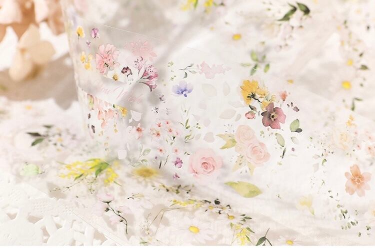 PETテープ ロマンティックフラワーコレクションシリーズ レトロ生花ハンドブック 装飾素材ステッカー 円形ステッカー6種