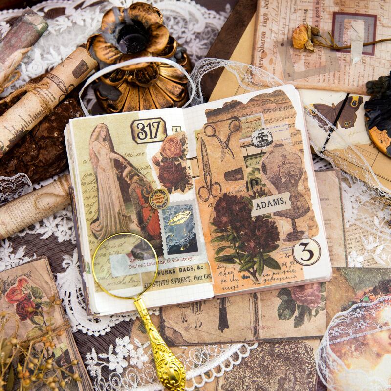 レトロ素材紙ミシン古い出来事シリーズ 4 種類のハンドブック装飾コラージュ裏地メッセージ紙ノート