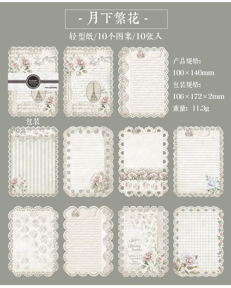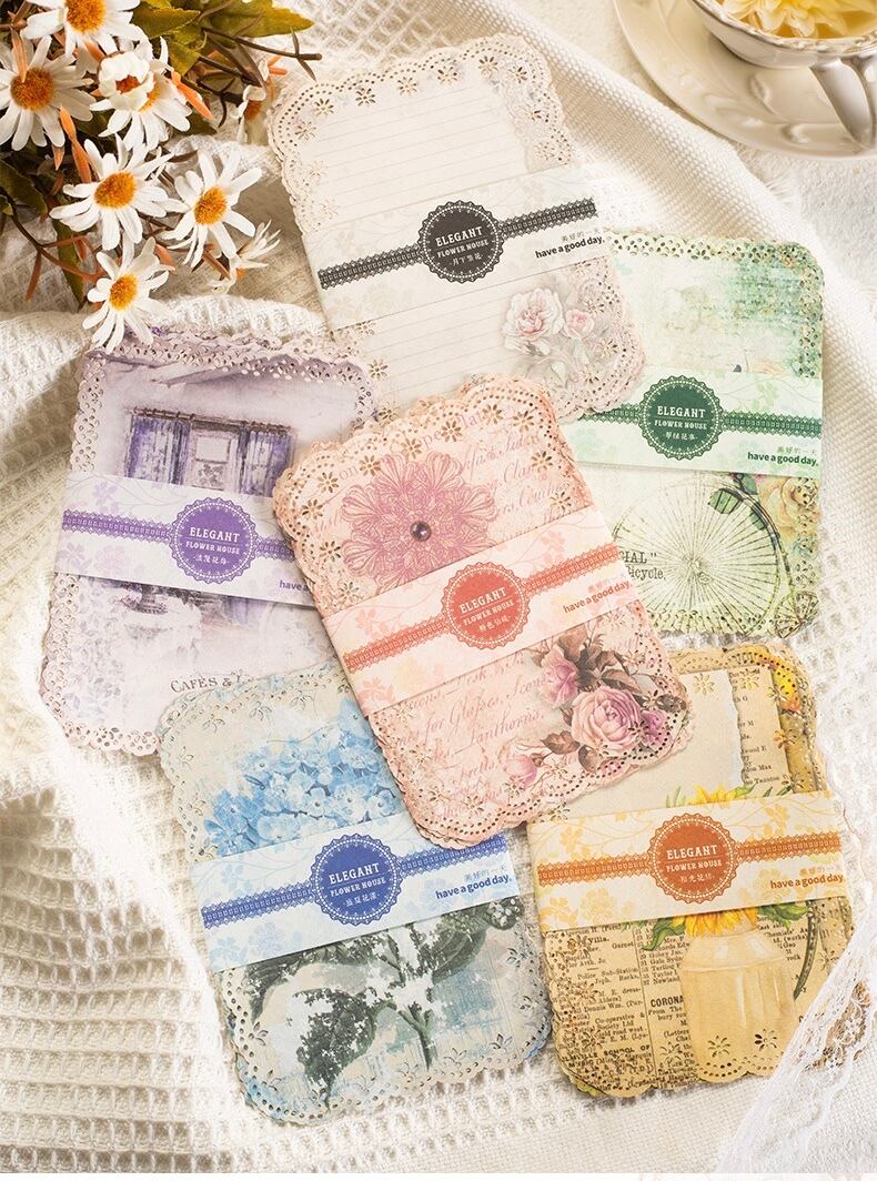 素材紙 フラワールームシリーズ 中空レースハンドブック素材 装飾コラージュ紙 6 種類