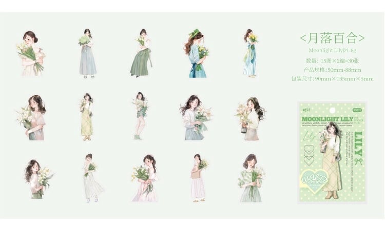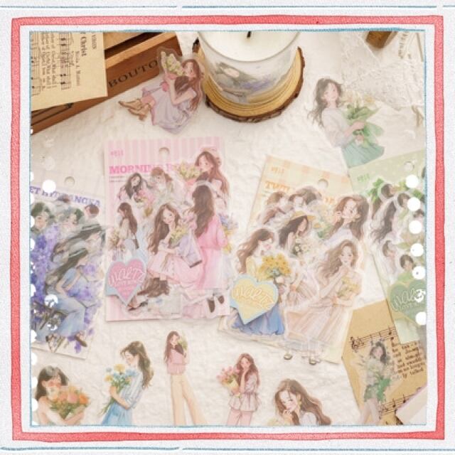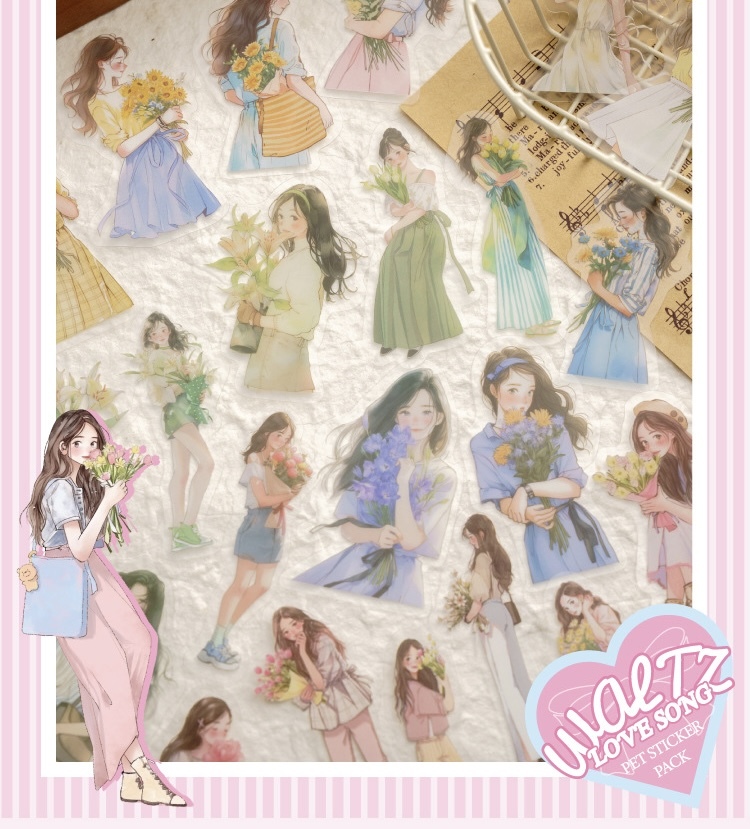 PETステッカーパック ワルツラブソングシリーズ アーティスティックガールハンドブックステッカーデコレーション素材 30枚