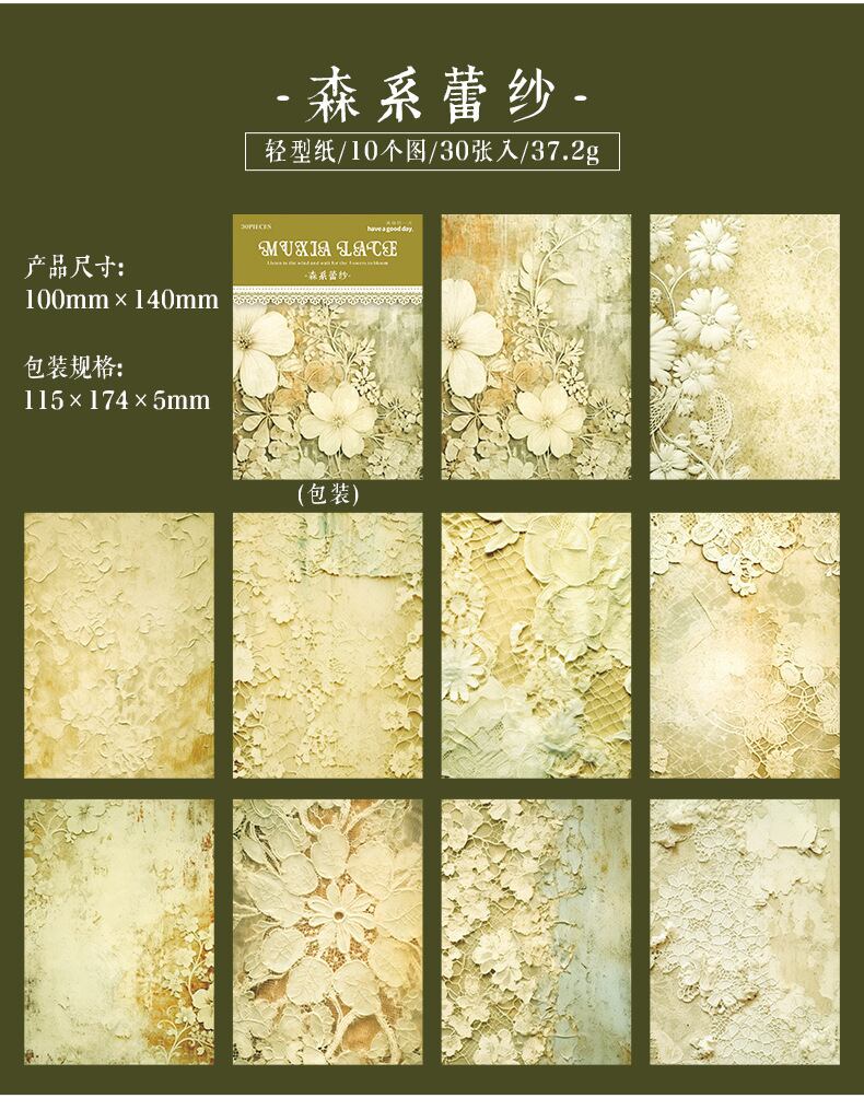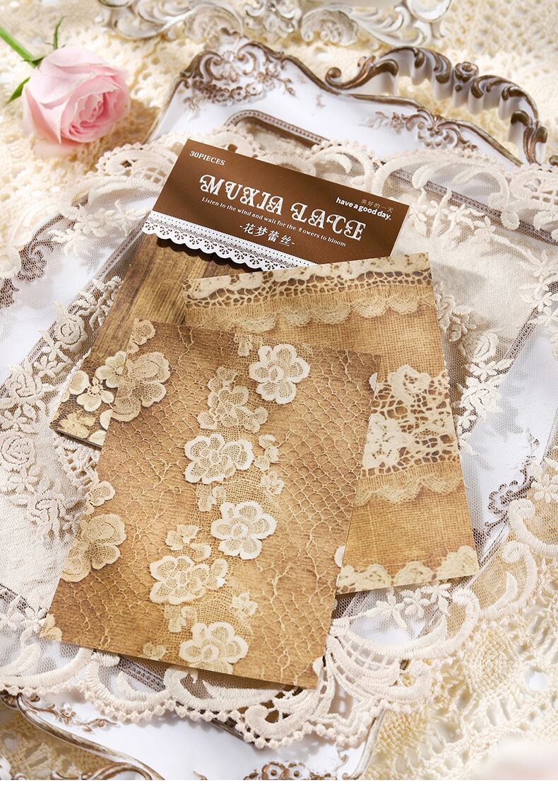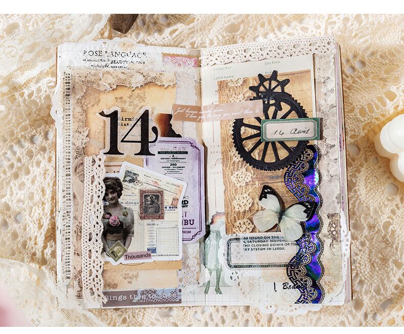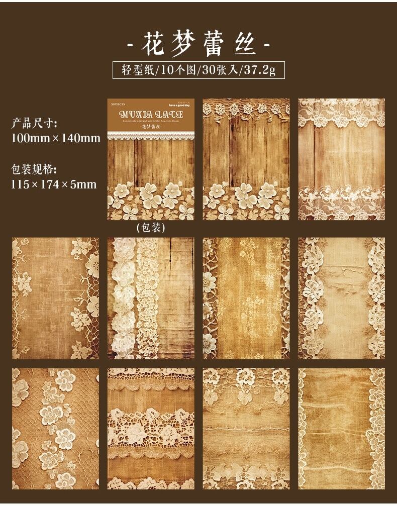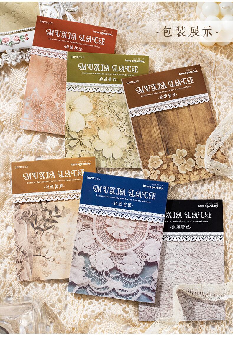 マテリアルブック ミュシャレースシリーズ レトロレースハンドバッグ 装飾コラージュベースブック 6種類