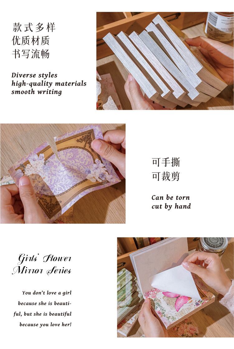 レトロ素材紙、女の子の花ミラーシリーズ、ノート、メッセージ、ノート、デコレーションノート、6 スタイル