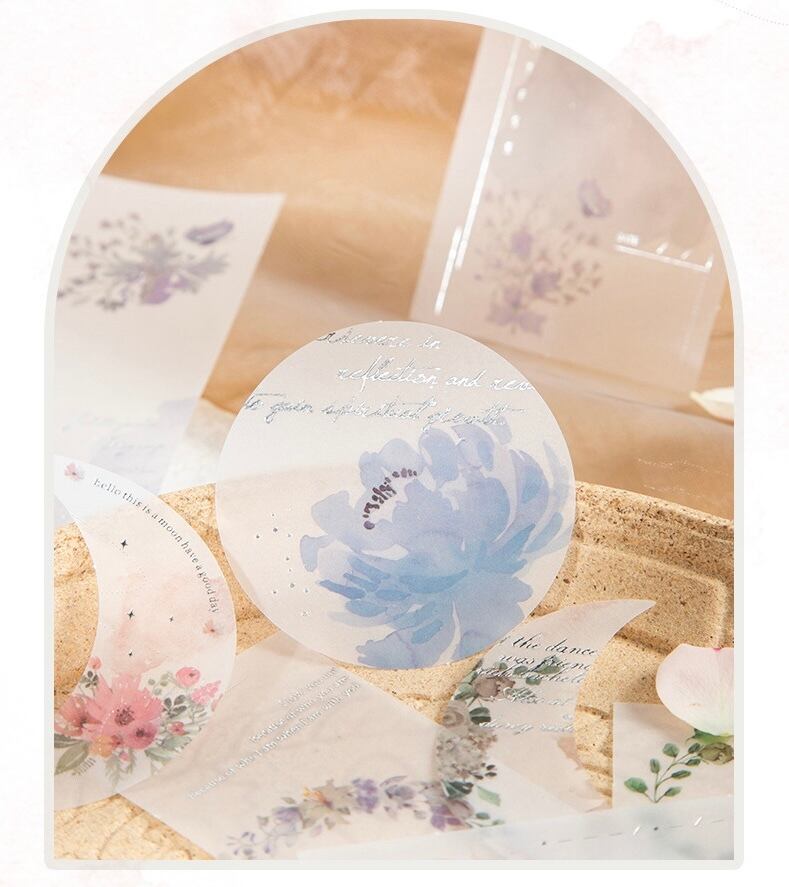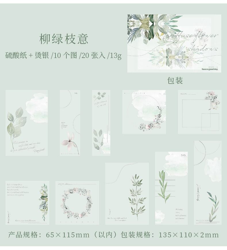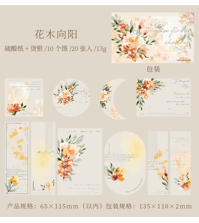 ディフューズフラワーシャドウシリーズ、ホットシルバーDIY硫酸紙、ライトインク装飾コラージュハンドブック、6種類