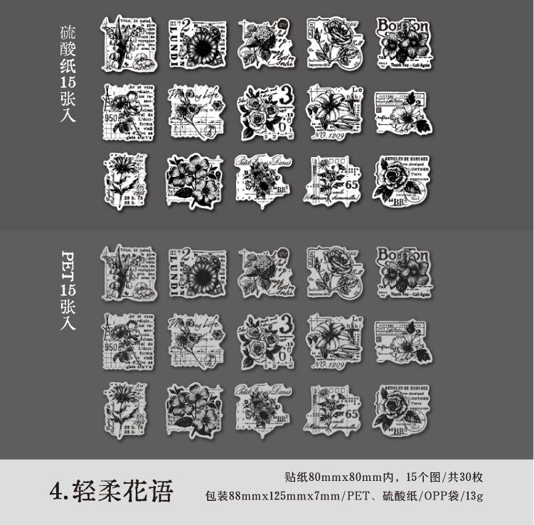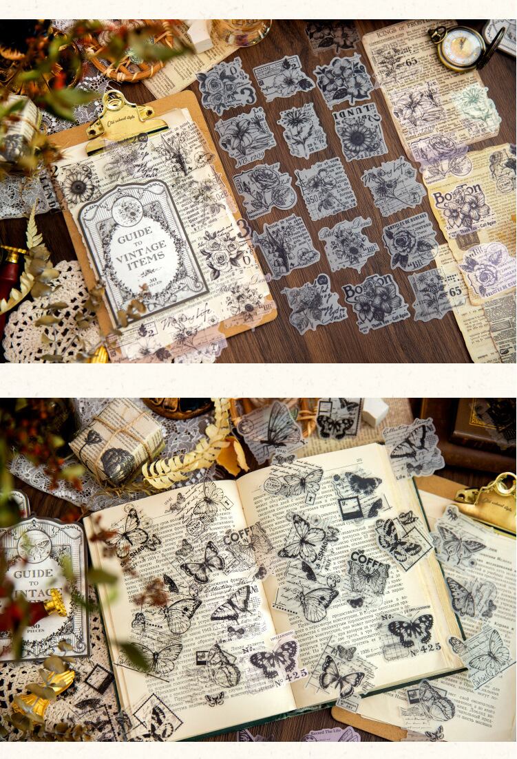 素材ステッカー 古いものパンフレットシリーズ ハンドアカウント素材 装飾コラージュ DIY ベースステッカー 6 種類