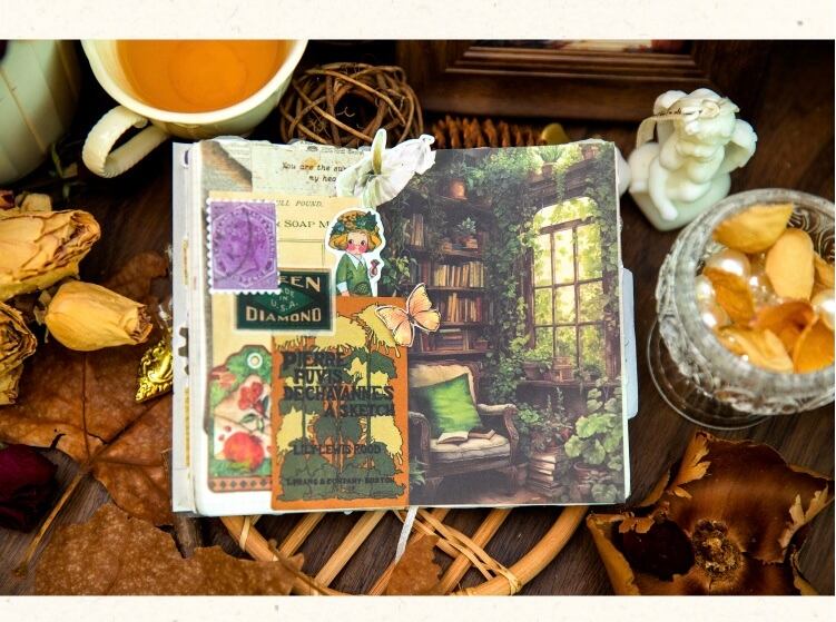 クラフト紙素材紙午後の時間シリーズ5種類のハンドブックデコレーションコラージュベースノートとメッセージ