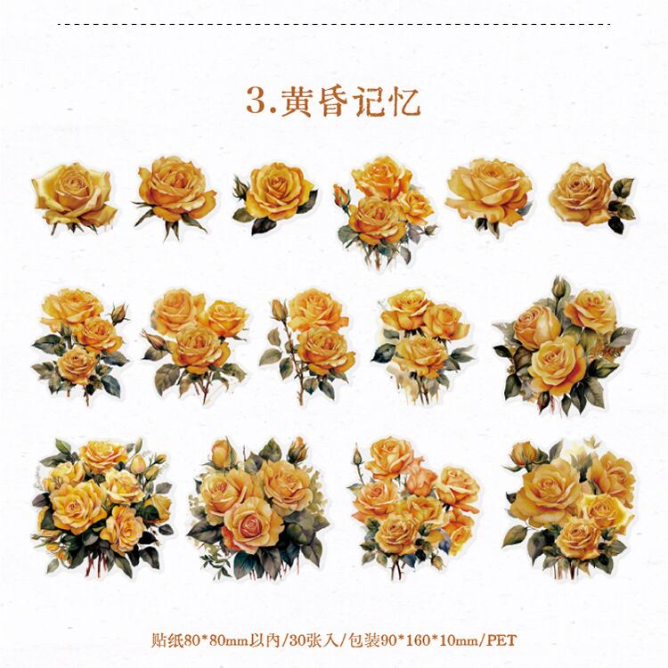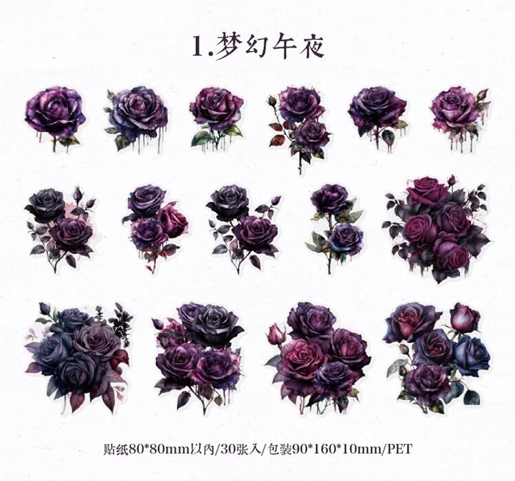 ステッカーパック 薔薇の冒険シリーズ INS花テーマ 日記装飾素材 コラージュ 30枚入り