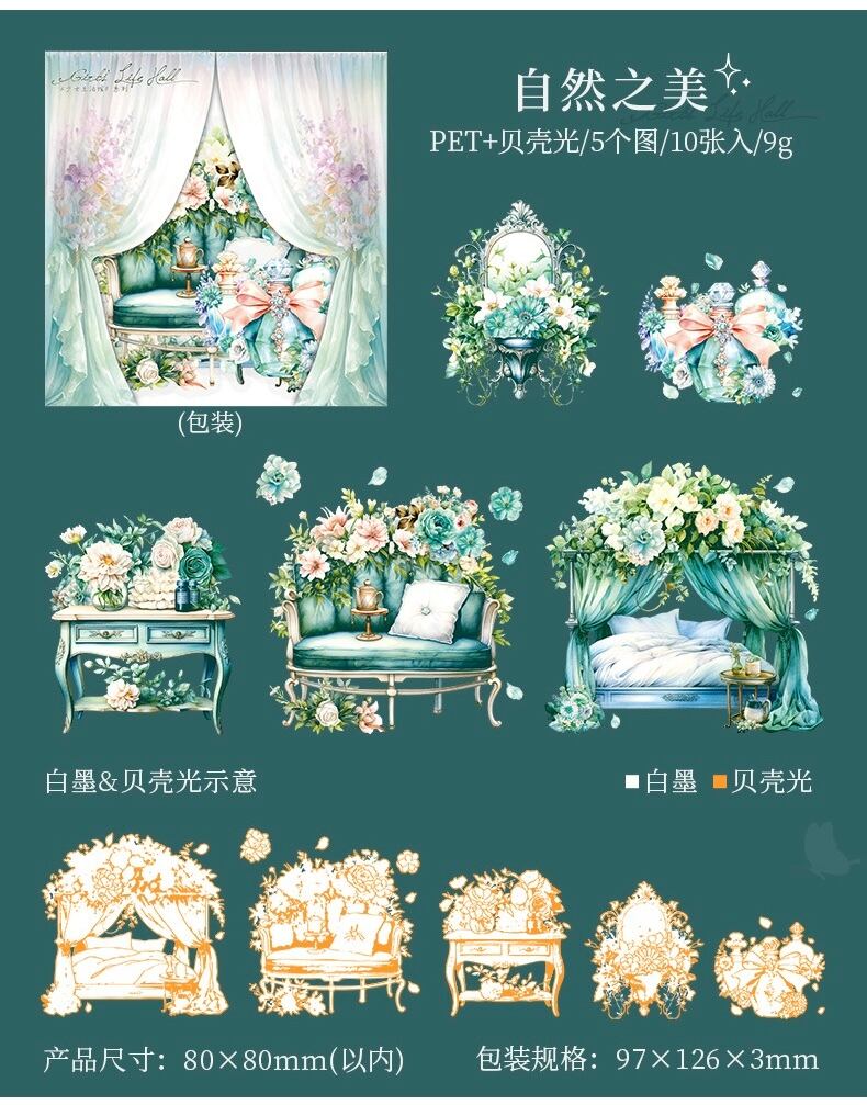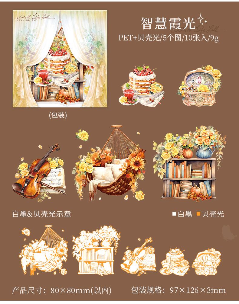 PET ステッカー ガールズライフホールシリーズ ファンタジーハンドブック 装飾素材ステッカー 6 スタイル 10 枚