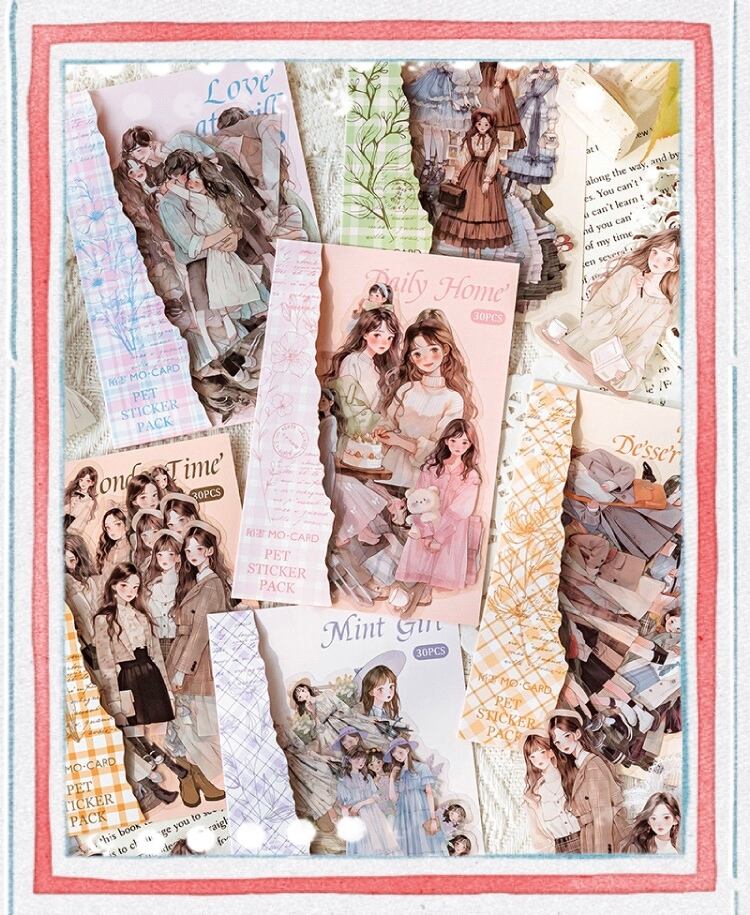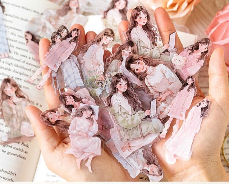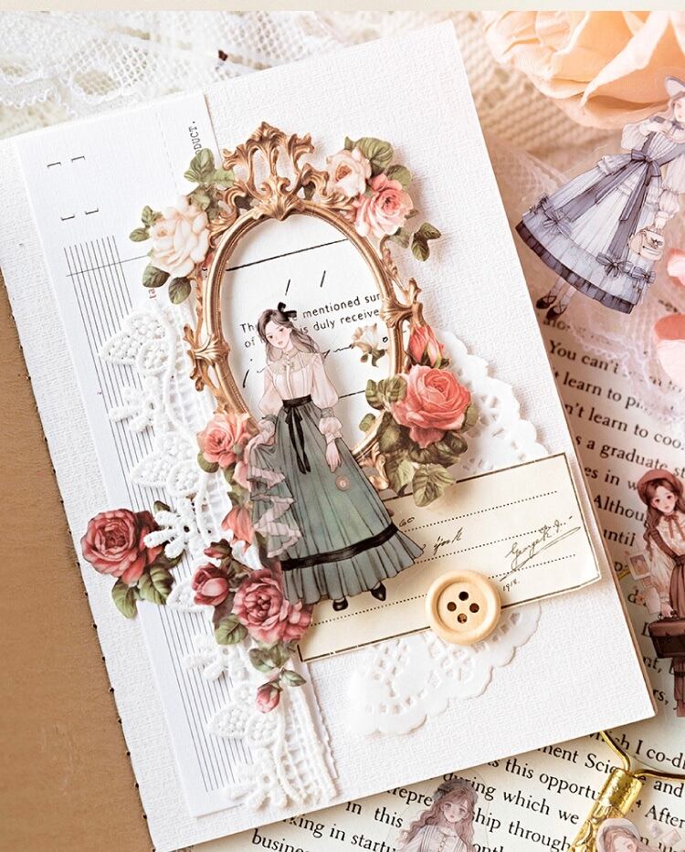 PET ホワイトインクステッカーパック ライフハイライトシリーズ アーティスティックガール クリエイティブコラージュ ハンドブック素材ステッカー