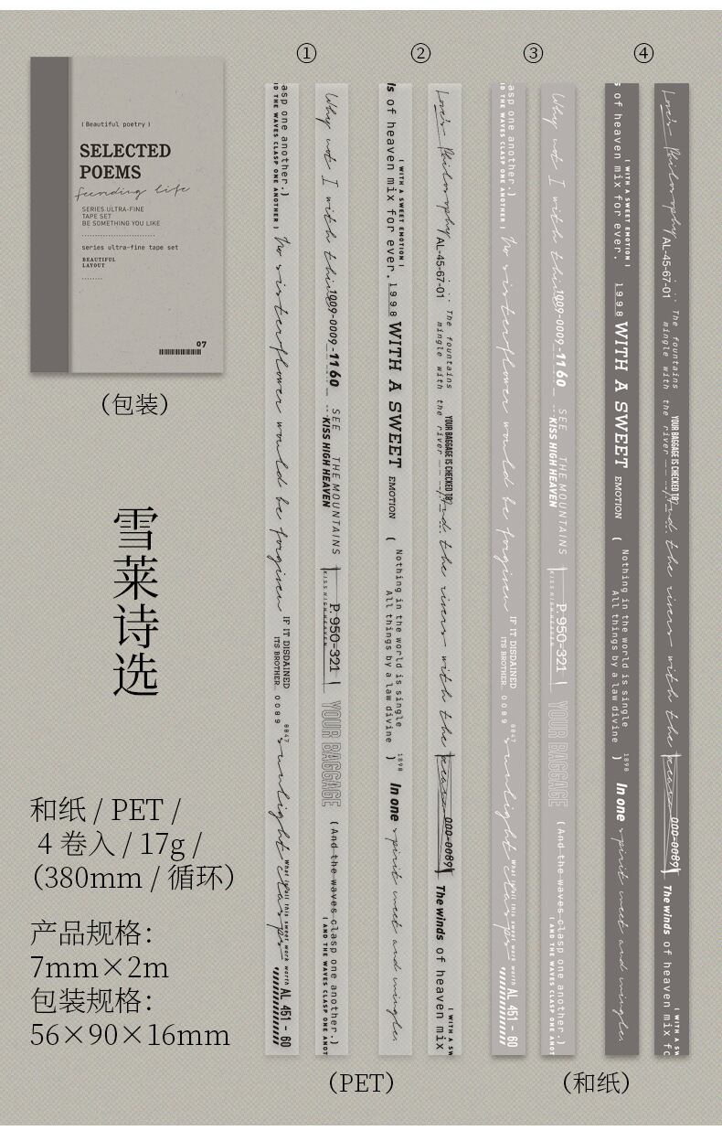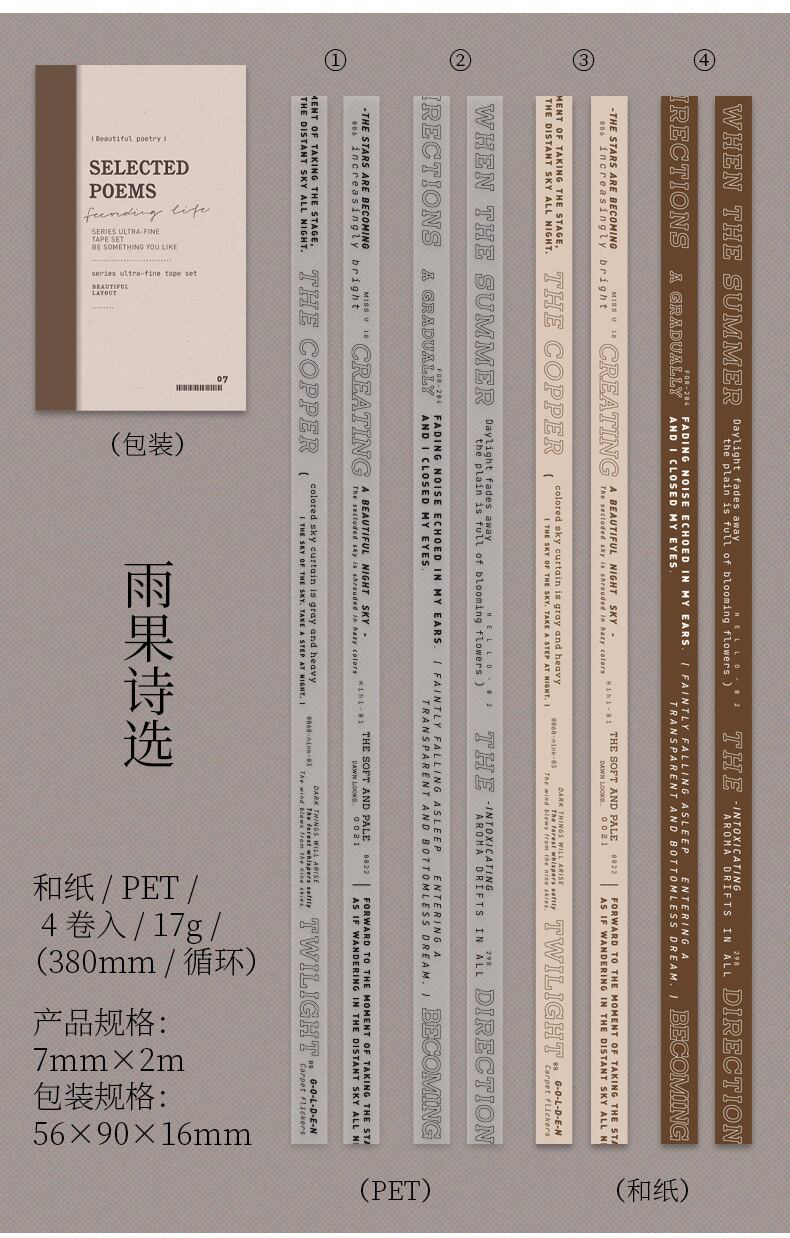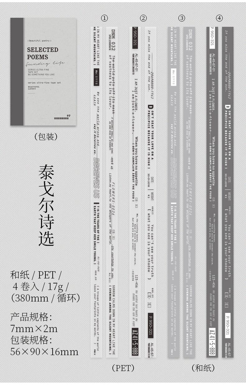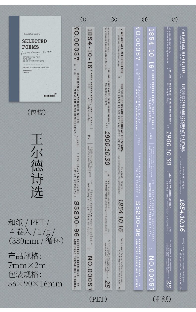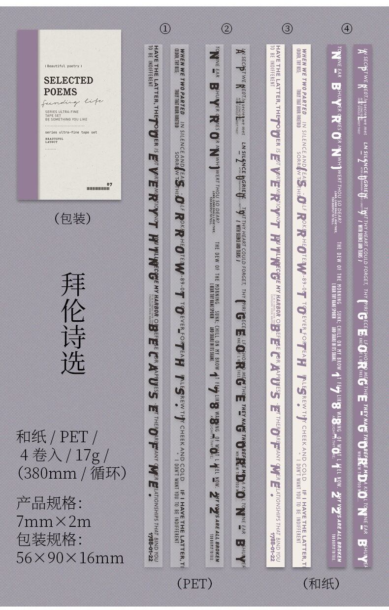 テープセット詩抜粋シリーズハンドブック装飾コラージュ英語コラージュヨーロピアンスタイルDIY 6スタイル