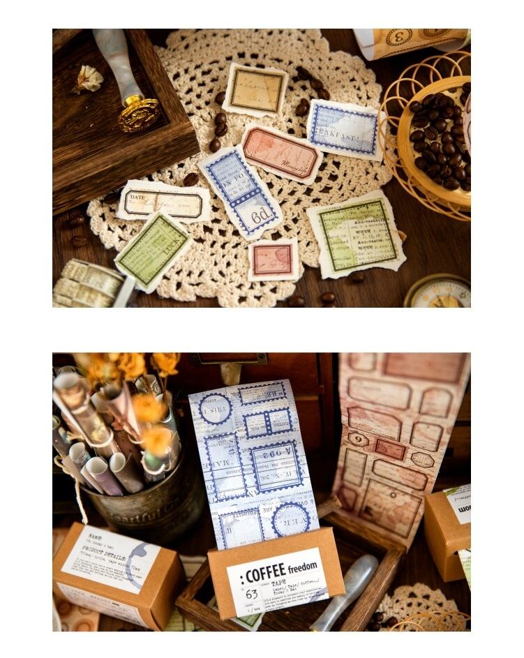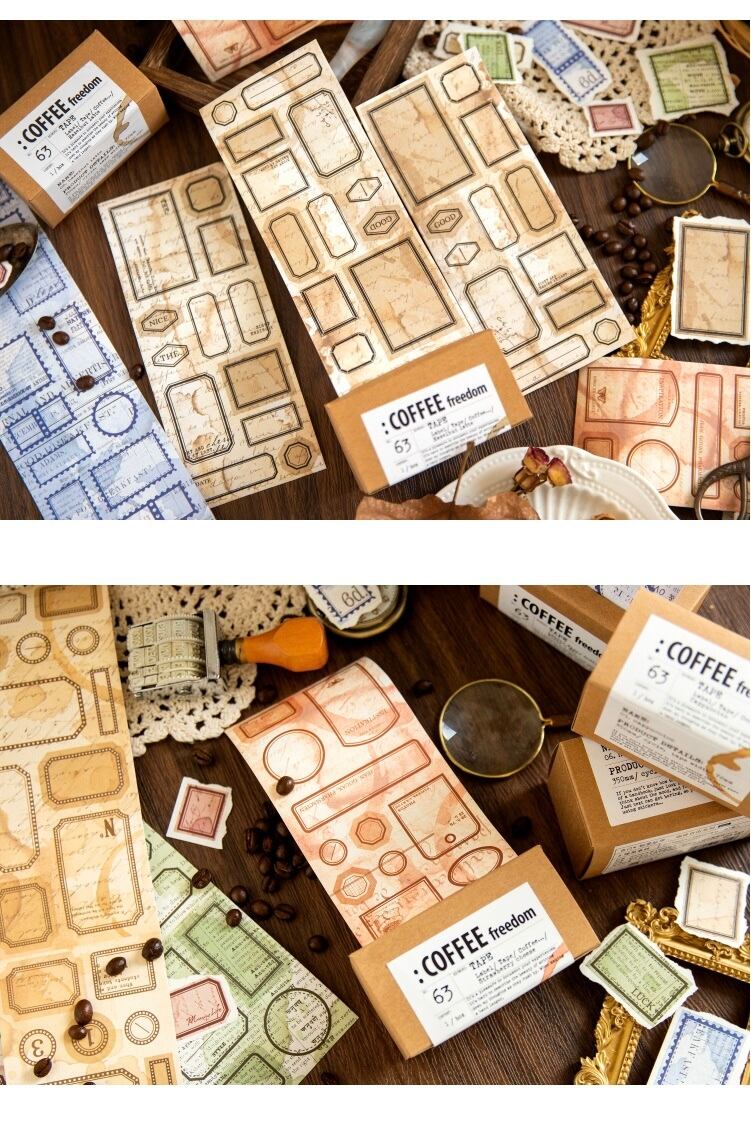 テープコーヒーフリーダムシリーズラベルレトロハンドバッグ装飾コラージュヨーロピアンスタイルベースマーキングステッカー 6種類
