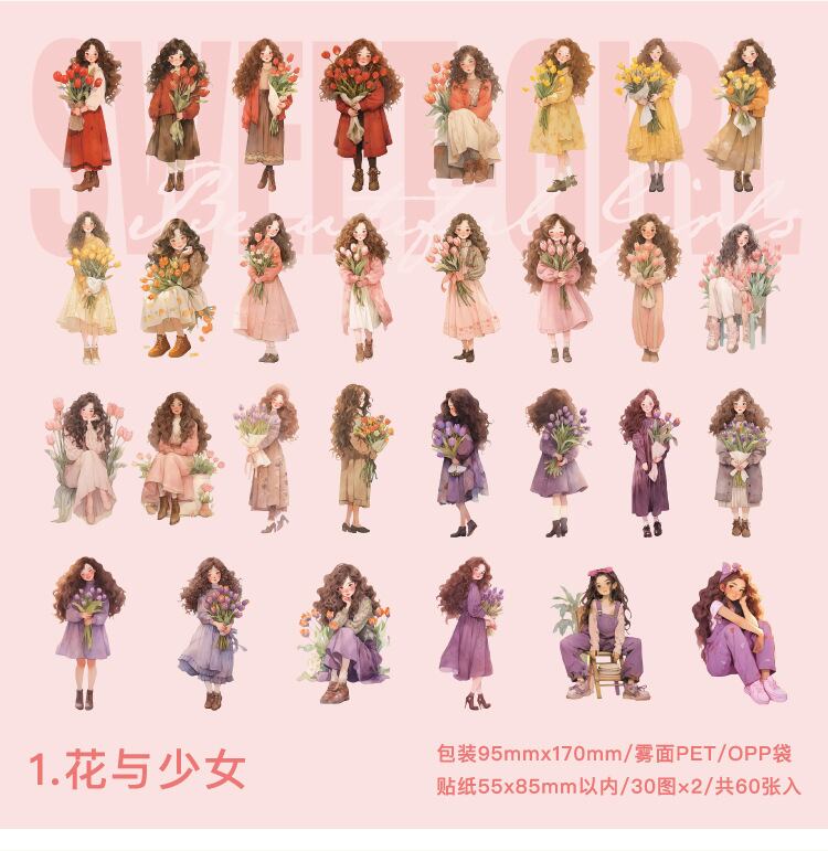 ガーリーマンガシリーズ ハンドブックステッカー素材 4種 デコラティブコラージュベースノート