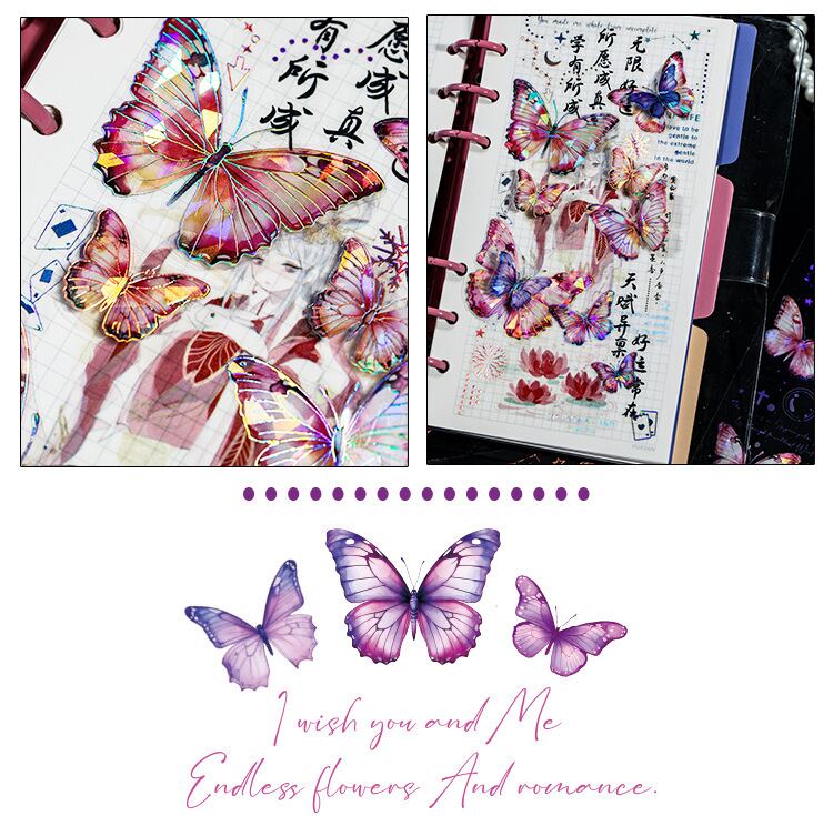シェルライト PET ステッカー蝶の夢の祈りシリーズファンタジー風蝶装飾ハンドアカウ