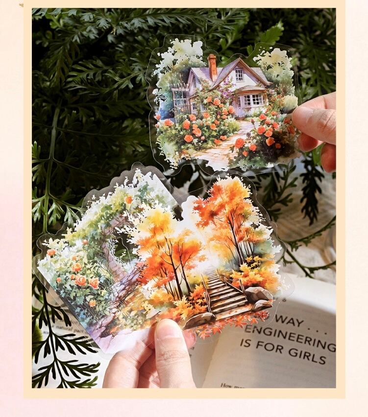 PET ステッカーパックガーデン風景ブックシリーズレトロハンドブック DIY 装飾コラージュ基材 6 種類