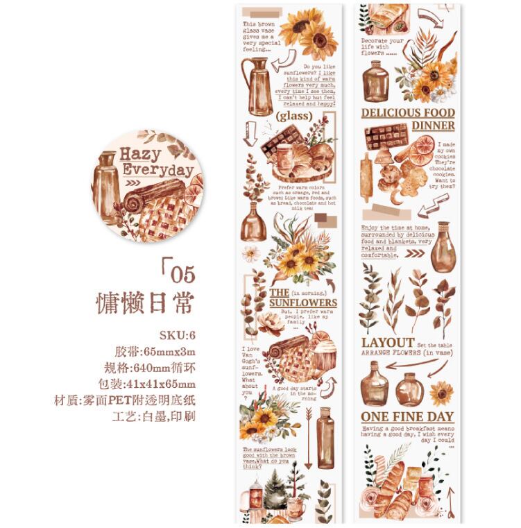 PET テープヘイジーデイリーシリーズマットハンドアカウント素材装飾コラージュ DIY ベース 6 スタイル