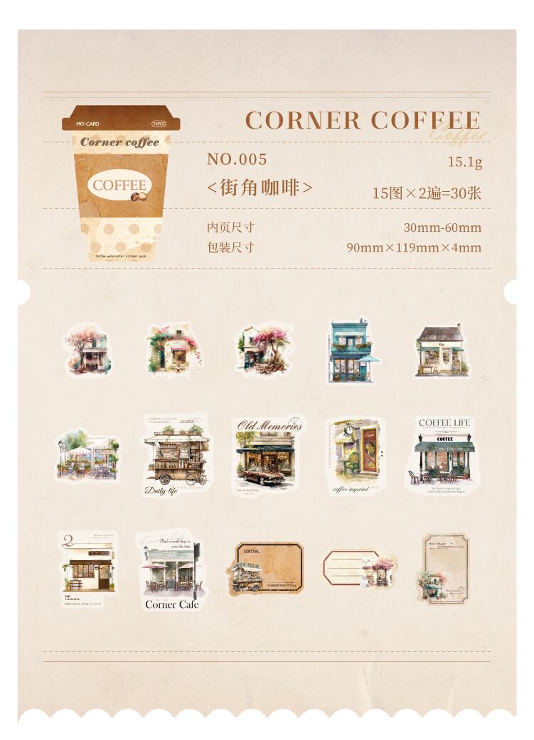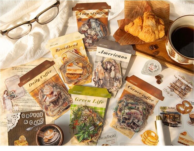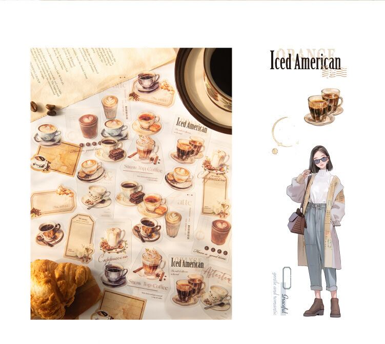 カラフルなコーヒー PET ステッカーパック、コーヒーの時間シリーズ、ハンドアカウント用の DIY 装飾コラージュ 6 種類