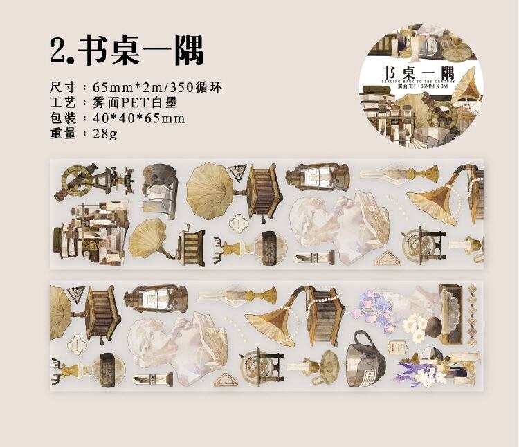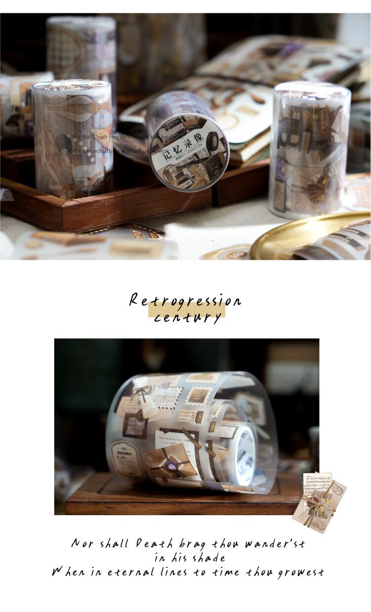 PET白インクテープ、世紀を辿るシリーズ、ハンドブック素材4種、デコラティブコラージュ、ベースシール