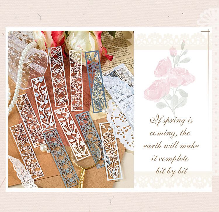レトロ中空ロングストリップレース紙レース花言葉シリーズ 6 種類のハンドブック DIY 装飾コラージュベースステッカー