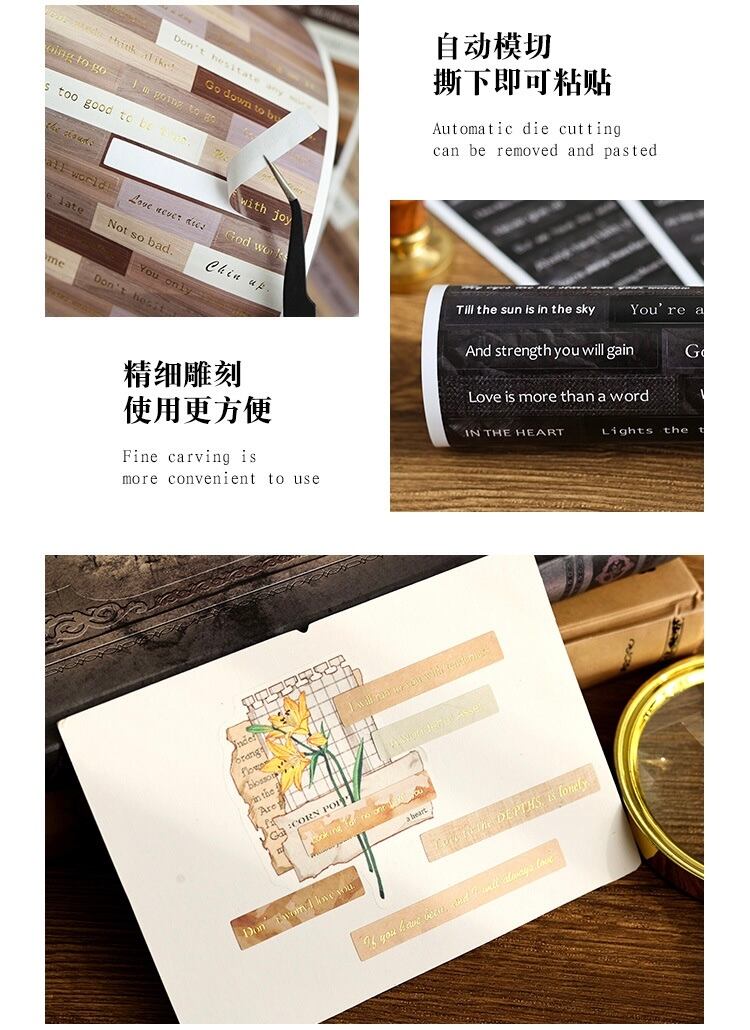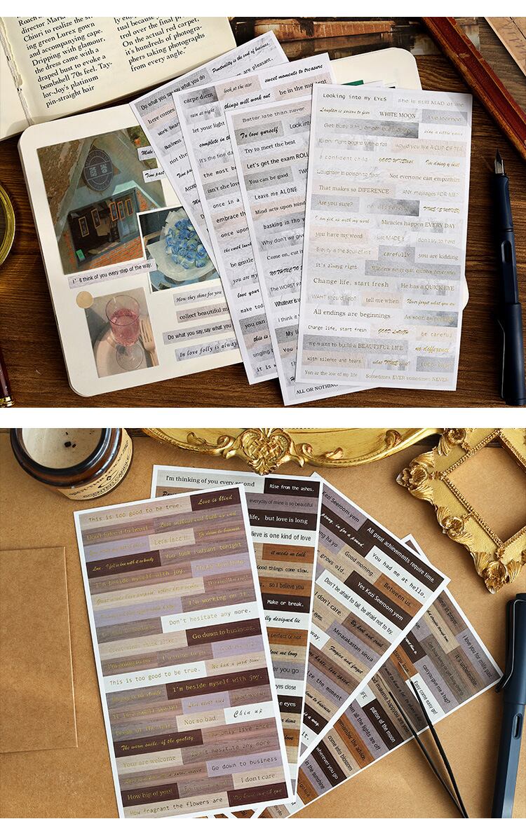ステッカー、ライティングライフシリーズ、レトロブロンズステッカー、クリエイティブテキストハンドブック素材、4種類