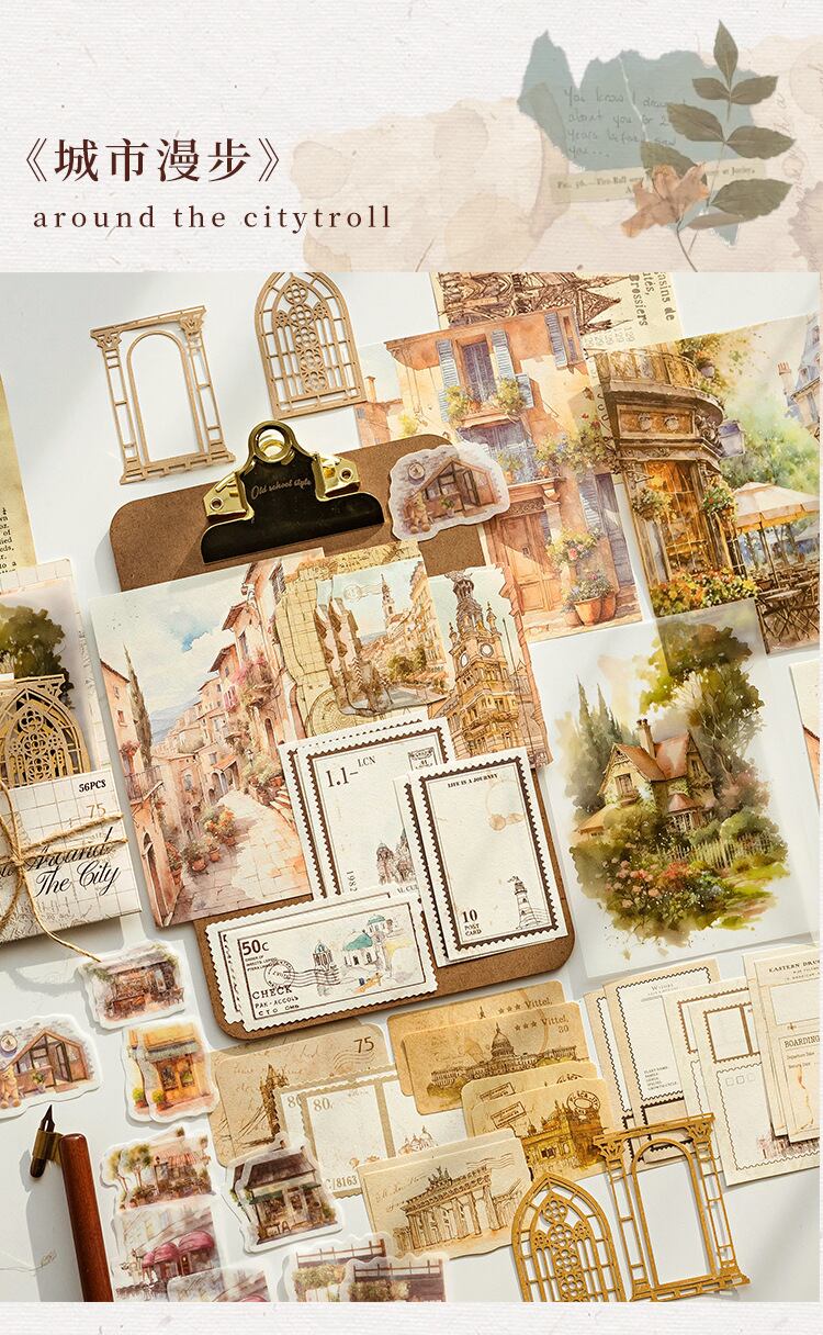 素材パック 歳月の游シリーズ メモ素材紙 紙ハンドバッグ DIYデコレーション紙 4種類