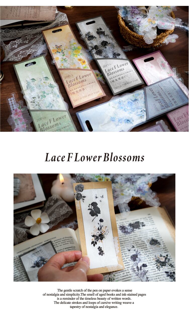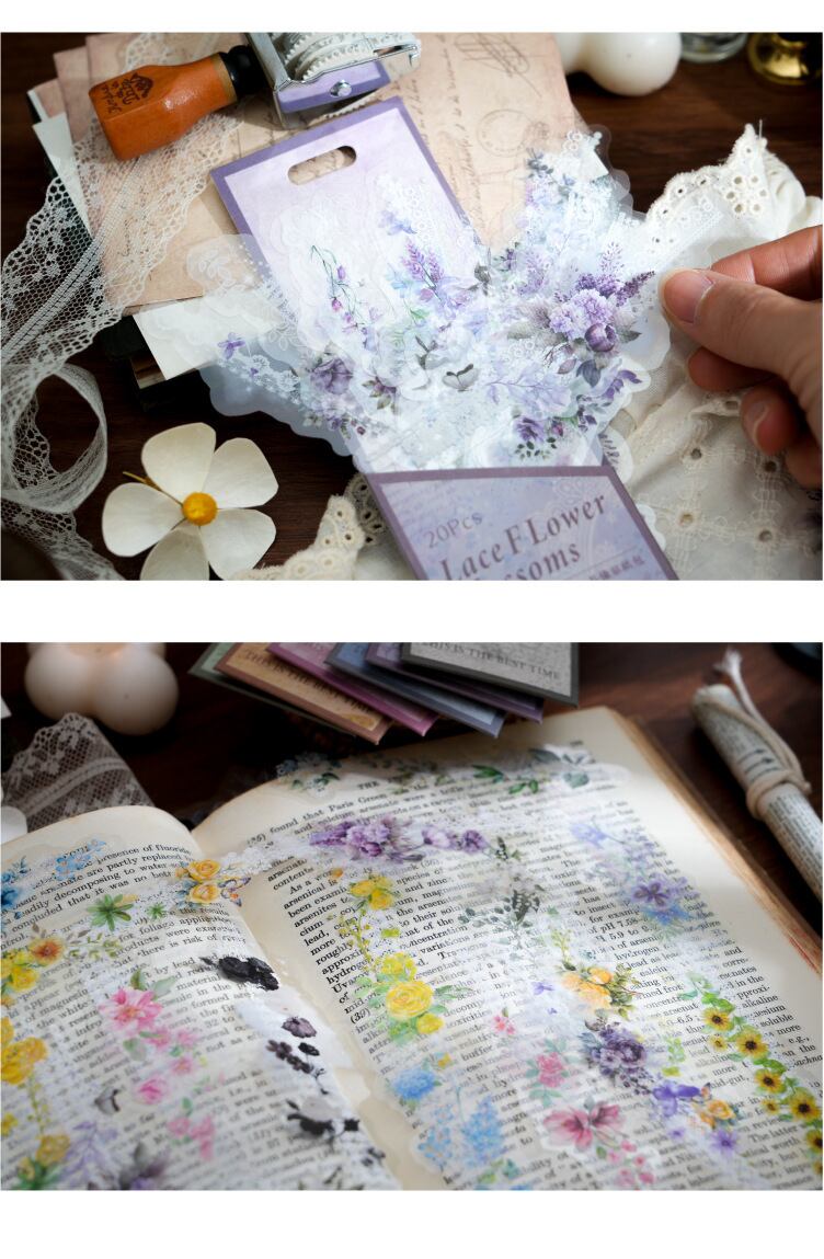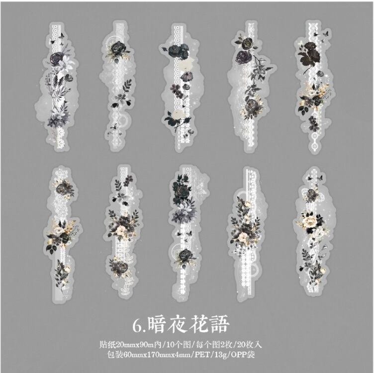 PET長条シールはレースの花宴シリーズの手帳素材を包んで貼り付けて6種