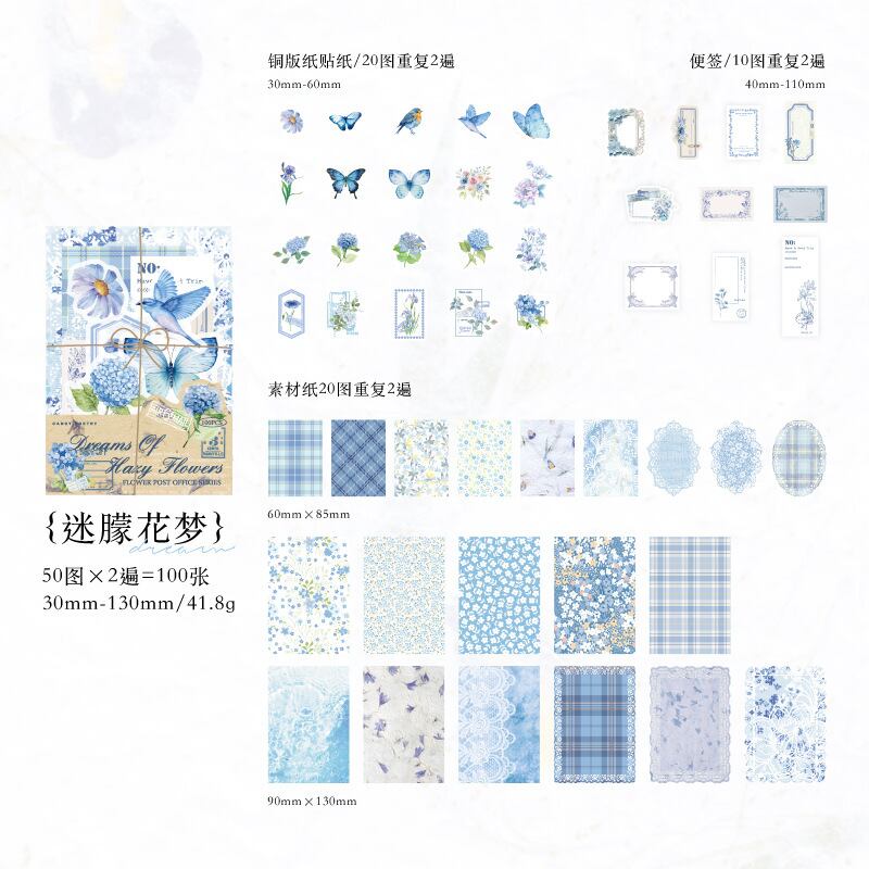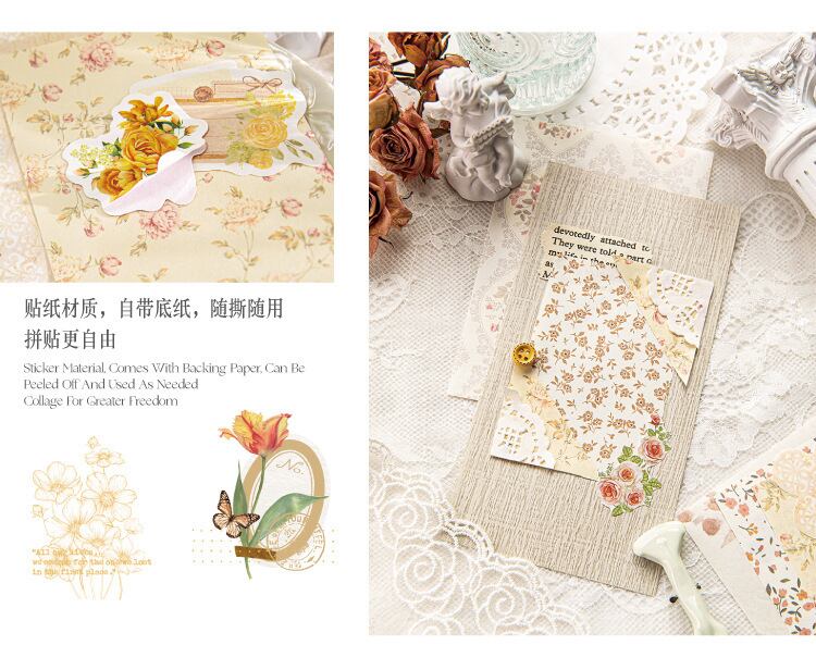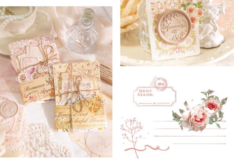 素材 華華郵便局シリーズ ライトレトロハンドブック 水彩フラワーステッカー 装飾紙 メッセージノート 4種類