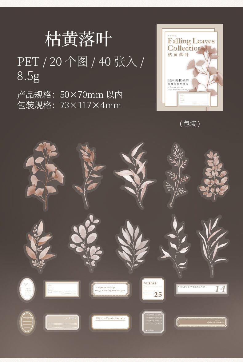 ステッカーパック 落ち葉ブックコレクション リーフラベル ハンドブック素材 装飾ステッカーベース 6種類